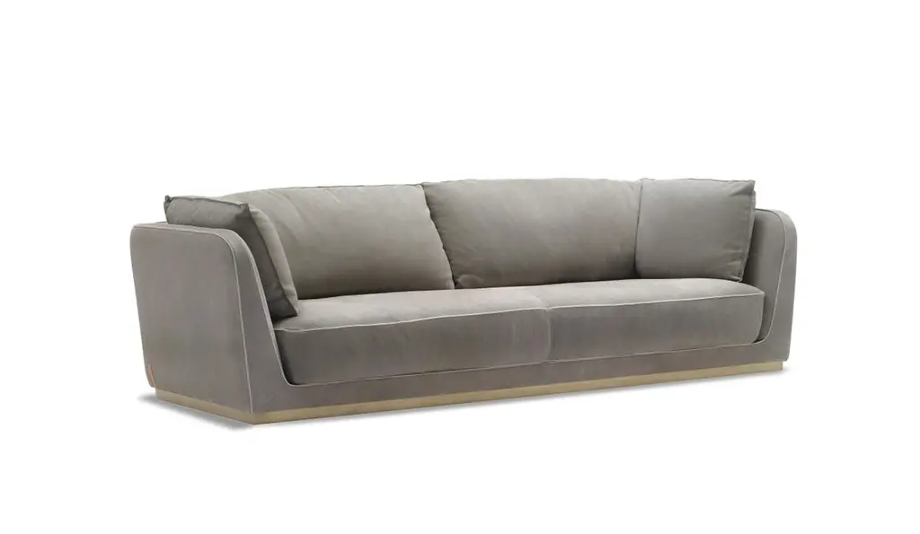 Internal structure :Solid wood and fir wood multi-ply.Cushions padding:Sitting cushions :External padding with natural, sterilized goose feathers.Internal center with memory foam and expanded polyurethane with differentdensity.Back cushions :Soft padding with natural, sterilized goose feathers, with a core support inexpanded polyurethane.Upholstery:High quality leathers or fabrics available in different categories.Tailor made stitching , with same color piping . Upon request the piping canbe made in different colors of leathers or fabrics.Base:H. 4 Cm , available in wood or metal with different colors or finish. This item can be customized upon request.