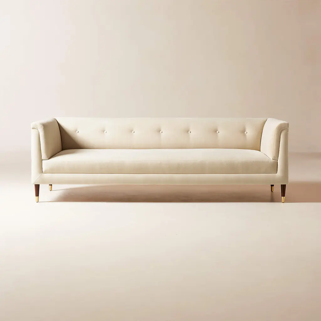 Dorien Tufted Cream White Velvet Sofa