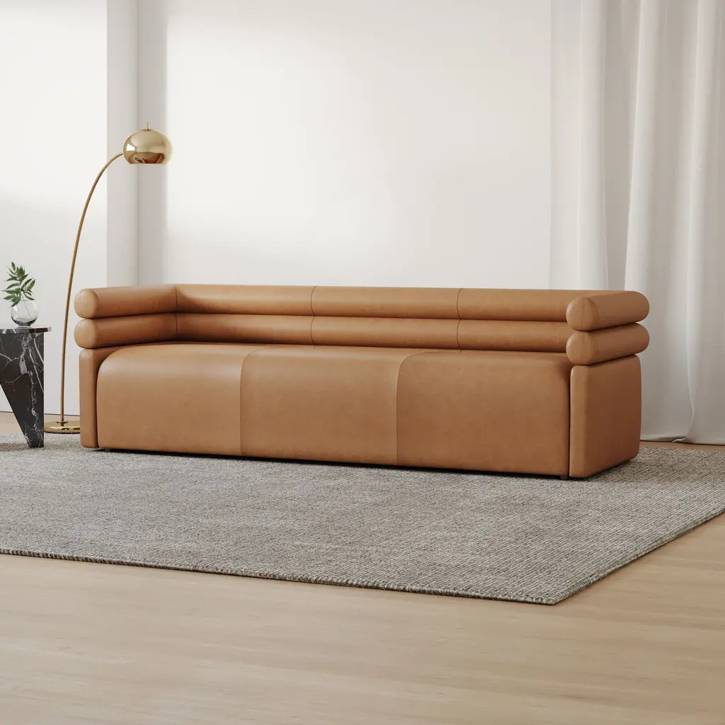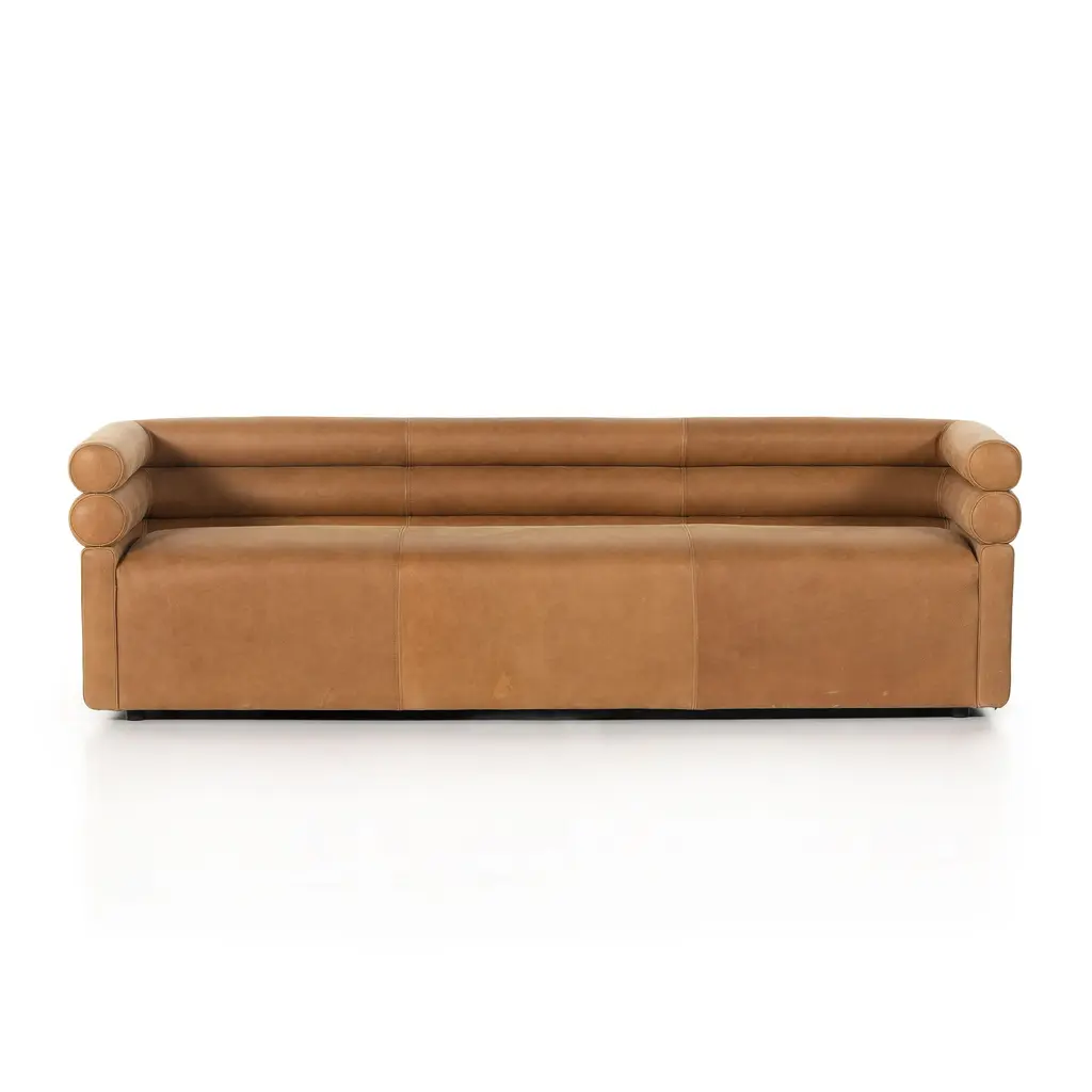 Horizontal channeling adds a clean, linear look to seating. Covered in beautiful top-grain leather. It's perfectly suited for the modern living room.