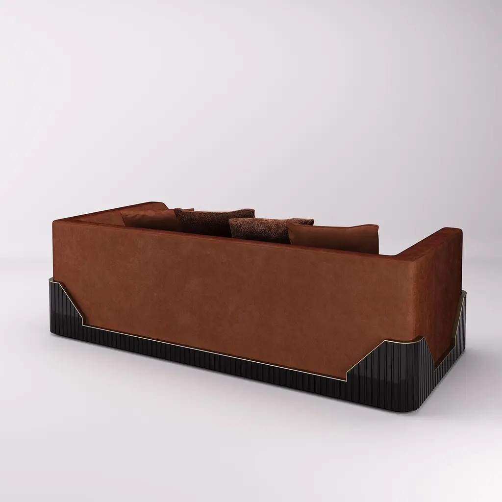 On-trend style meets clean lines to give this velvet-upholstered sofa in a beautiful rust color a look that instantly elevates your home aesthetic. A lacquered wood structure and metal detailing on the bottom corners gives a bit of edge to this contemporary sofa with a low back and angular armrests and that comes with four supporting cushions.