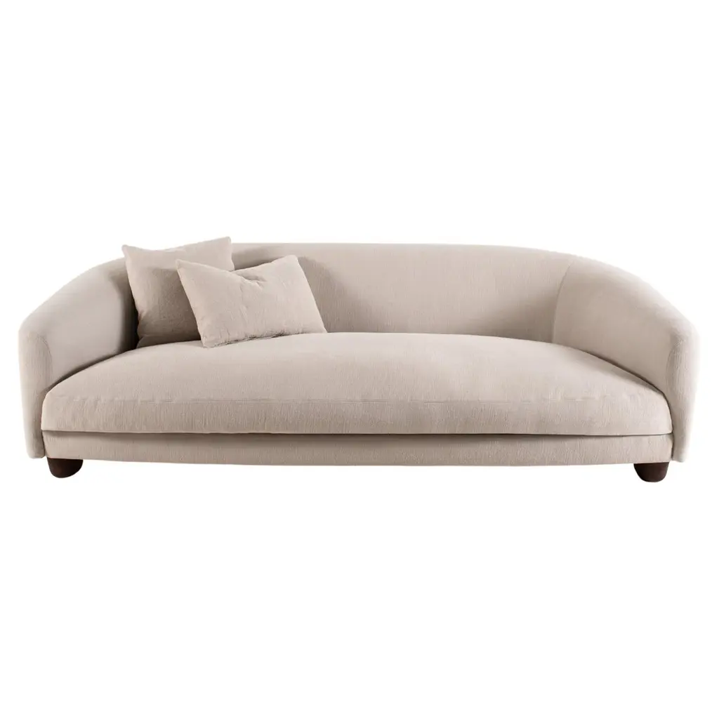 TECHNICAL SPECIFICATIONSFRAME IN WOOD WITH POLYURETHANE AND DACRON PADDING COVERED WITH PROTECTIVE FABRIC LINING.SEAT IN POLYURETHANE AND DACRON.BASE IN SOLID WOOD ASHWOOD NATURAL, STAINED WENGE’, STAINED EBONY OR STAINED BROWN.THROW PILLOWS DOWN-FILLED, WITH UPCHARGE.UPHOLSTERY NOT REMOVABLE FABRIC OR LEATHER COVERS.FRAME PIPING DIFFERENT COLOURS OF GROSGRAIN AVAILABLE (SEE SAMPLE CART)MATERIAL1. FRAMEWOOD FINISHES2. UPHOLSTERYCOTTON - FIRE PROOF - LEATHER / NABUK - MIXED COMPOSITION - VELVETA sophisticated collection that includes a settee, armchairs, a chaise longue, a bench and a bed. The pieces suggest the memory of traditional furniture types, clearly visible in the large, enveloping back without armrests. The proportions of the tall back counterbalance the solid wood structure with its short legs, just slightly raised off the ground. One particular and very successful piece is the large padded bench with its central backrest, an icon of the collection, of great visual impact, at the center of the hall of a hotel or in the entrance of an elegant residence, perhaps at the foot of a double staircase. The cover in leather or fabric can have grosgrain borders with contrasting or matching colors.