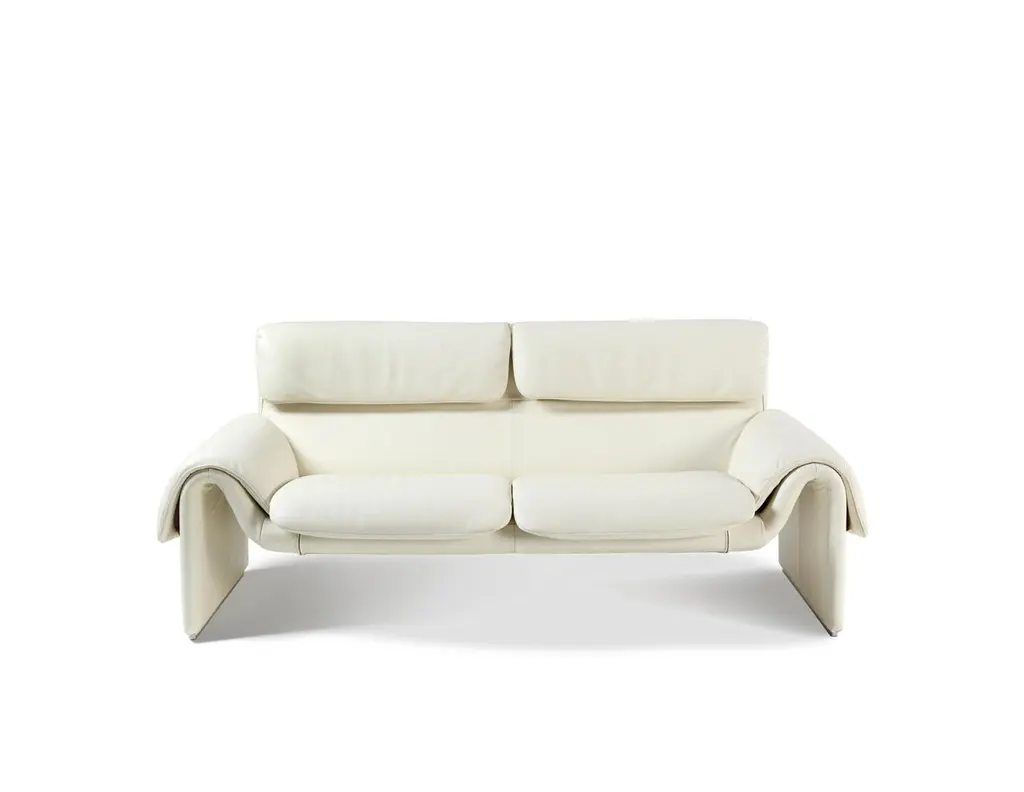 DS-2011/02 sofa by De SedeDimensions: D 59 x W 163 x H 84 cmMaterials: beechwood, leatherPrices may change according to the chosen materials and size. Aesthetics and functionality in a harmonious combination. An impressive design with a solid steel construction and light upholstery. Casual cushions and visible seams complete the harmonious look.De Sede has its origins in a small but skilled saddler's workshop in Klingnau, Switzerland. The craftsmen there committed themselves to transforming the best possible leather into seating furniture. Their years of experience and diligence enabled them to create handcrafted leather furniture of singular quality.In 1965, the family-run business became a joint-stock company called De Sede AG, but remained faithful to their original guiding principles.The company developed rapidly from this moment onwards: top designers of international caliber were brought on board to create seating furniture, additional manufacturing facilities were opened, and an international distribution network was established. Sophisticated designs that skillfully integrate traditional and precise Swiss workmanship swiftly gained the brand an international reputation.Today, De Sede AG presents itself as a leading manufacturer of exclusive leather furniture. Out of the original small workshop, a company has emerged that employs over 110 people and distributes furniture in more than 69 countries, including the United States and Russia, the GCC countries, and even emerging markets such as China and Brazil.