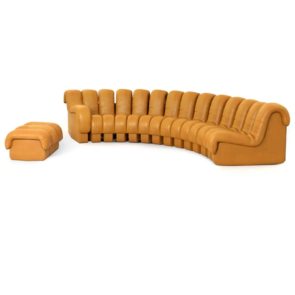 The DS 600 Sofa "non-stop" sofa was designed by Ueli Berger in 1972. Named after a mythical alpine creature, the Tatzelwurm, the DS sectional sofa is composed of narrow modular elements that can be expanded to create seemingly endless shapes. It is designed to allow for a combination of varying elements, rendering it possible to create a multitude of compositions. By always using the same module, you could technically create the longest sofa in the world, and in your space, you could create your unique design based on the needs of the environment. The sofa can be configured in countless different ways - from the iconic curve (as shown), an arc form or even a straight line - and everything in between.