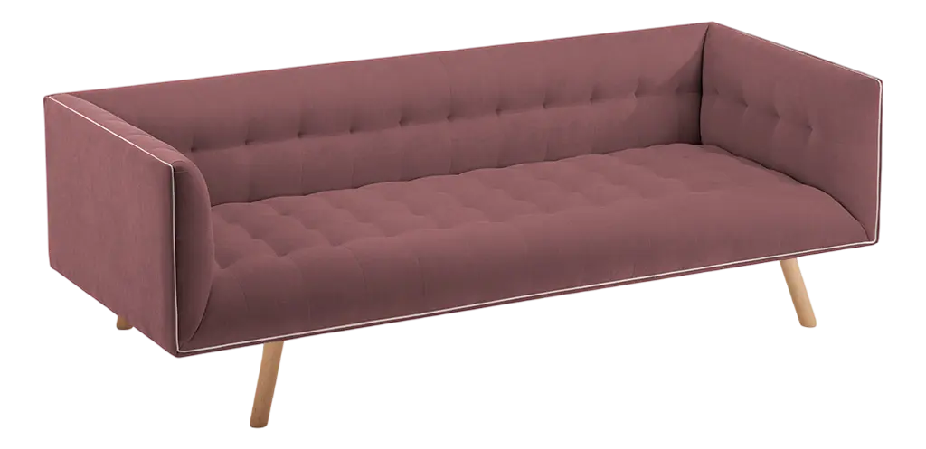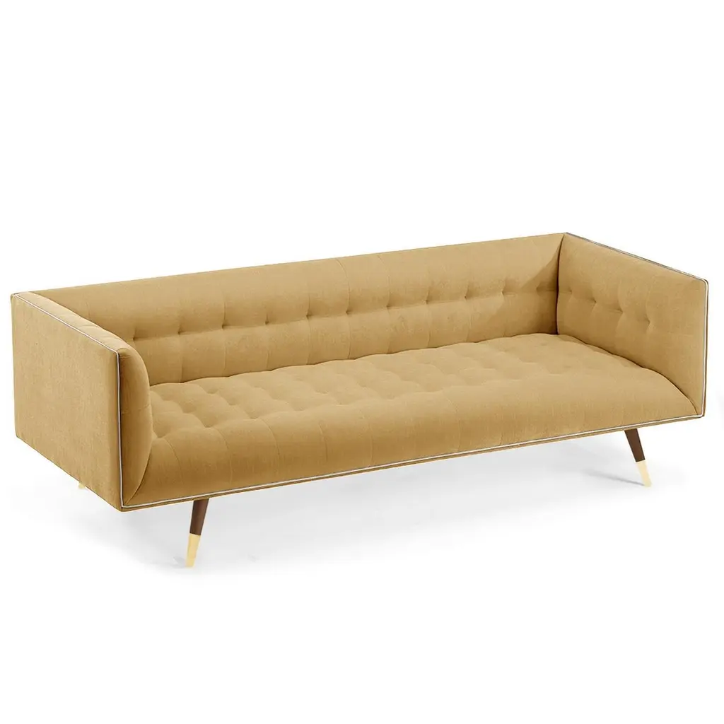 The Dust Sofa is constructed in solid wood, with an elevated tufted elegant look and a comfortable seating. Handmade with a solid wood base and wood legs with a stylish polished brass metal feet detail. Available as an option.The Dust Sofa is available in a number of different materials, finishes and combinations.Wood finish and upholstery can be fully customizedCOM Available: Small sofa: 12.5 yards, medium sofa: 13.5 yards, large sofa: 14.5 yardsMaterialUpholstery: Velvet Fabric, Boucle Fabric, COMWood legs: Solid wood Base, Metal Foot Detail (on demand)DimensionsAvailable in 3 sizesSmall: W 63” x D 35” x H 28” - Seat height 16”Medium: W 78” x D 35” x H 28” - Seat height 16”Large: W 86” x D 35” x H 28” - Seat height 16”Customers can choose from fabric options: Aluminium, Paris Mouse, Paris Safira, Paris Dark Blue, Teal, Smooth 60, Paris Green, Paris Lavanda, Vigo Blossom, Paris Brick, Boucle Snow, Barcelona Lotus, Paris Black, Smooth 72, Vigo Plantain, Corn.