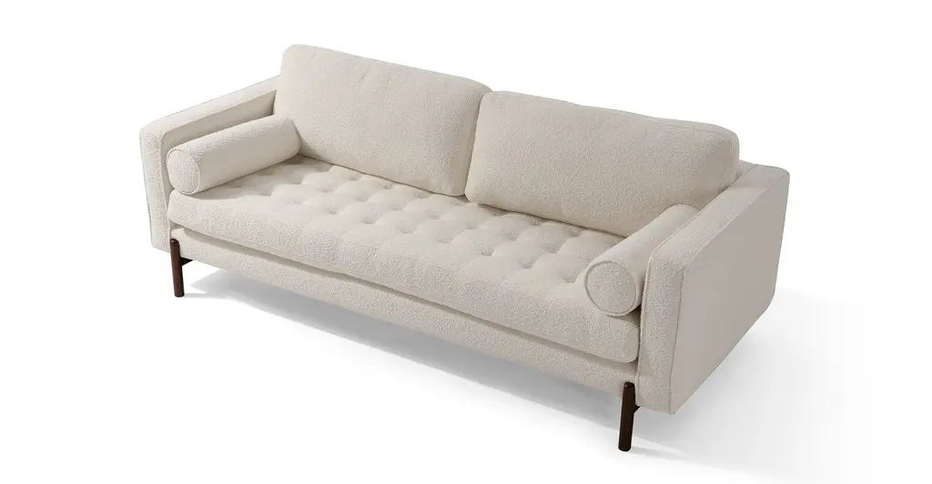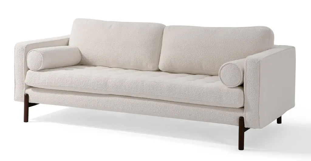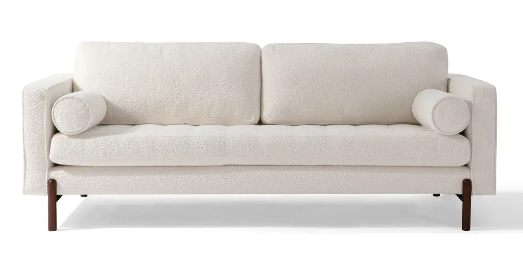 There is no shortage of seating with this gorgeous sofa. Dwell blends a sleek silhouette with tufted, button-less seat cushion detail. We love how the solid walnut, mid-century spindle legs rise up the sofas exterior contrasting the upholstery. The clean, square body lines give nod to mid-century design while the stuffed back cushion speaks contemporary. Style and comfort sorted.