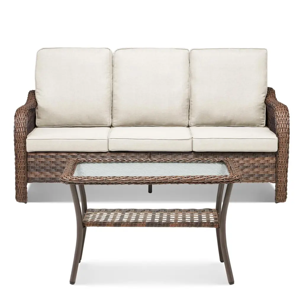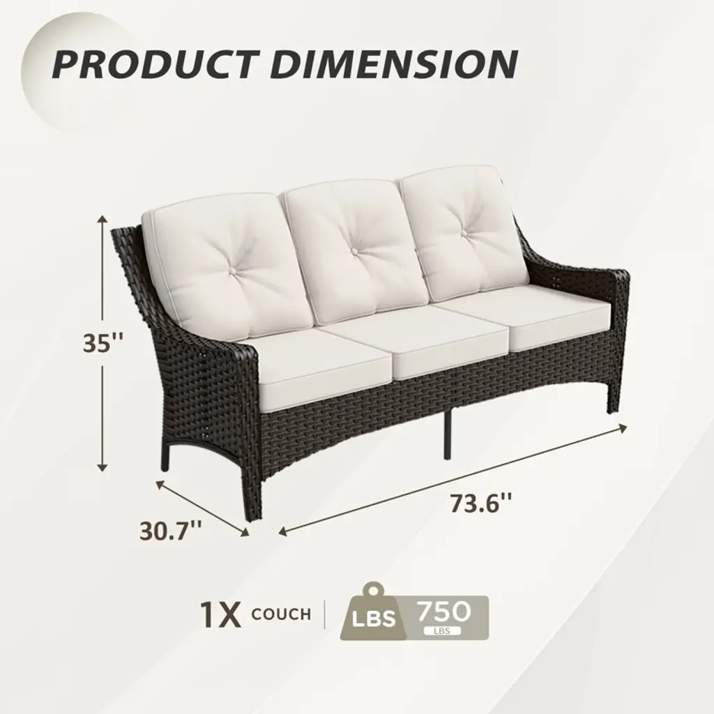 Eagle Peak Azure Bay 3 Seat Outdoor Wicker Patio Sofa, Weather Resistant Rattan Sofa, Deep Seats, Beige