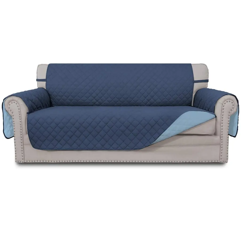 Easy-Going Reversible Couch Cover With Foam Sticks Elastic Straps - Dark Blue/light Blue