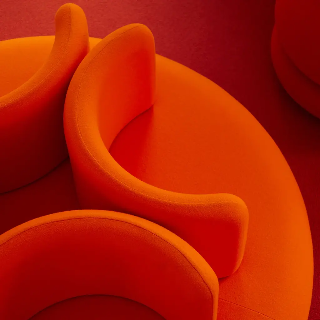 Adding a new member to the Easy collection, the Easy Sofa designed by Verner Panton is now re-introduced. With its round shapes and layered design, the Easy collection stands out as one of the most visually distinctive pieces of the Verner Panton design catalog. The round shaped Easy Sofa has four U-shaped backrests giving you four individual spaces, where you can enjoy a relaxing moment. The backrests doubles as armrests as you change your seating position. The sofa offers generous seating space and has improved seating comfort. It comes fully upholstered and is available in a wide range of fabrics and colors, allowing you to tone the design up or down depending on your style preference. Easy Sofa is part of the Easy collection which also includes Easy Chair and Easy Pouf.