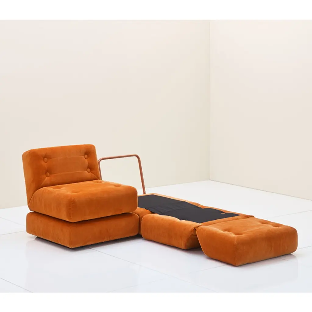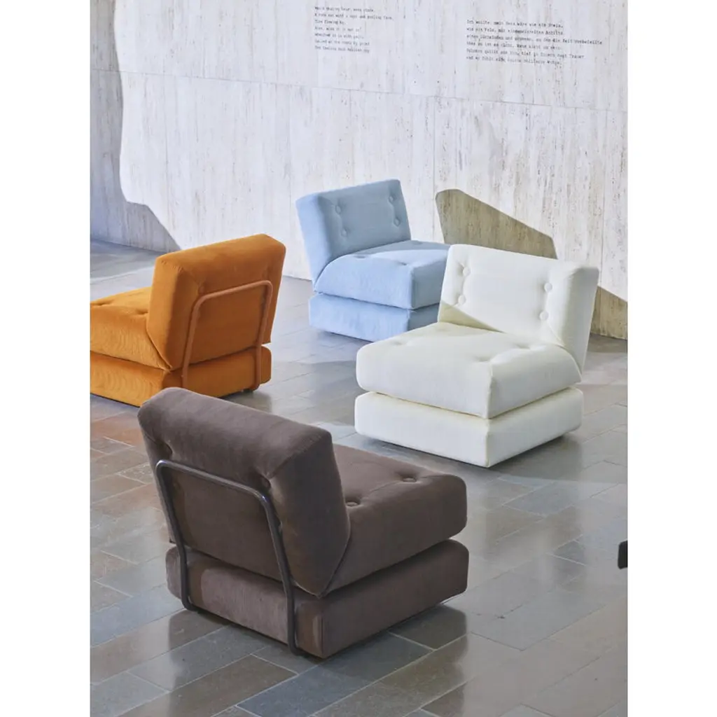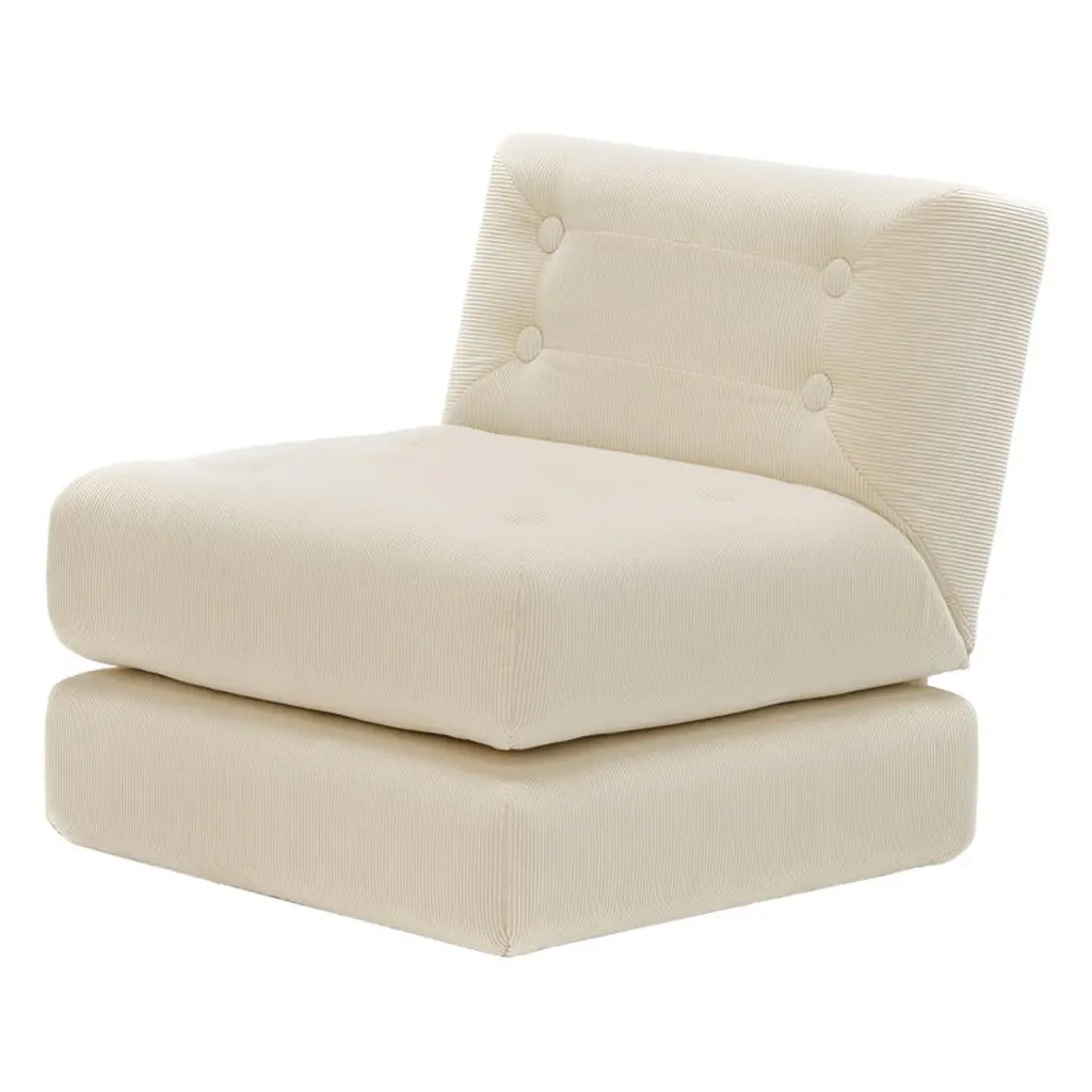 The Easy single-seater sofa by Fasetti boasts a characterful 1970’s design: conceived by Ahti Taskinen, the modular sofa was originally introduced at the first-ever Habitare furniture fair held in Helsinki in 1970. As you would expect from the era, Easy is quite robust and low, and upholstered in cozy corduroy. Thanks to the modular design, the single-seater can be used as a singular lounge chair or combined into a larger sofa unit. What’s more, the module transforms into a bed to accommodate a surprise guest – or even several of them, should you combine modules to create your very own custom sofa-bed! Reintroduced in 2021, the Easy chair bed is manufactured in Finland.