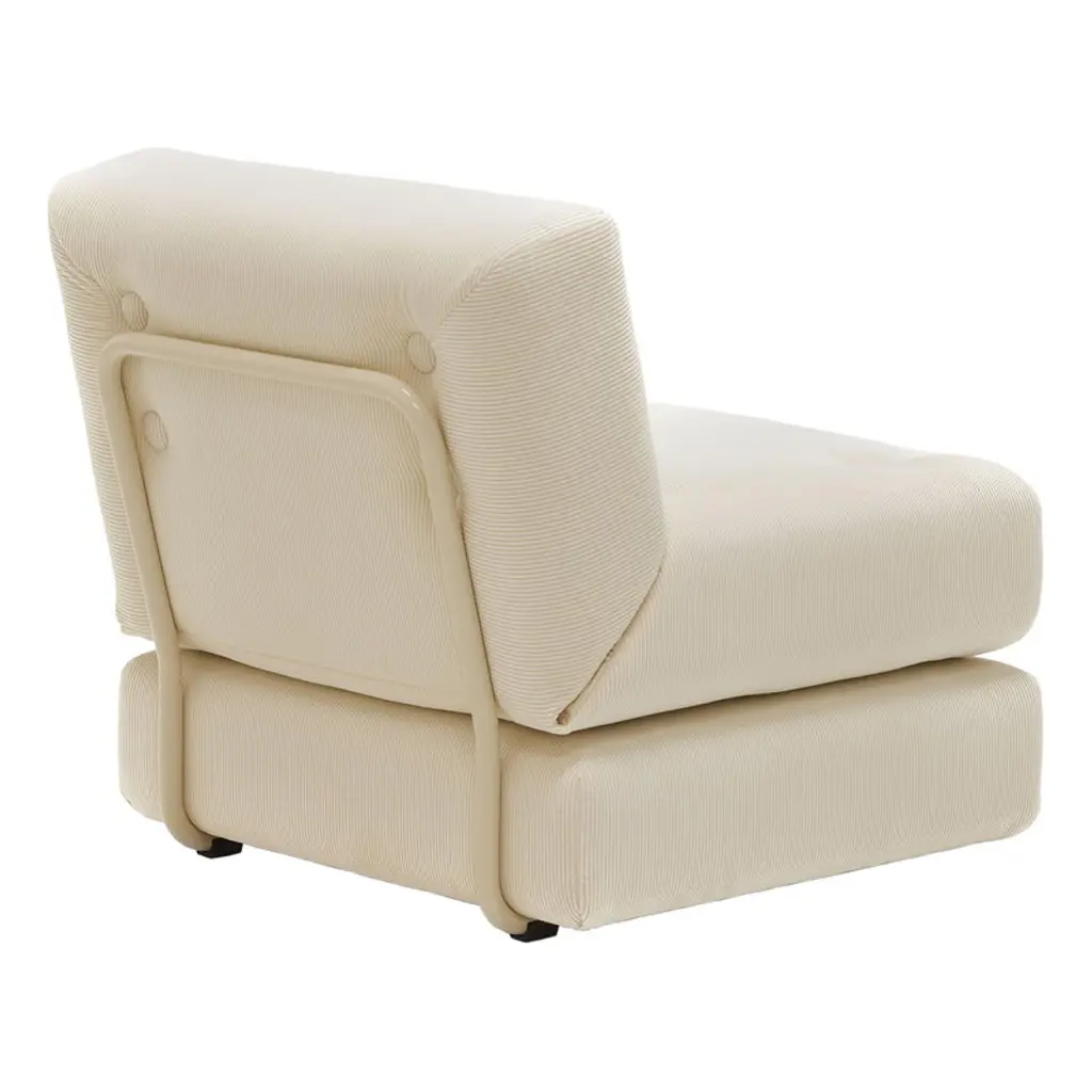 The Easy single-seater sofa by Fasetti boasts a characterful 1970’s design: conceived by Ahti Taskinen, the modular sofa was originally introduced at the first-ever Habitare furniture fair held in Helsinki in 1970. As you would expect from the era, Easy is quite robust and low, and upholstered in cozy corduroy. Thanks to the modular design, the single-seater can be used as a singular lounge chair or combined into a larger sofa unit. What’s more, the module transforms into a bed to accommodate a surprise guest – or even several of them, should you combine modules to create your very own custom sofa-bed! Reintroduced in 2021, the Easy chair bed is manufactured in Finland.