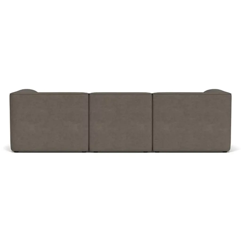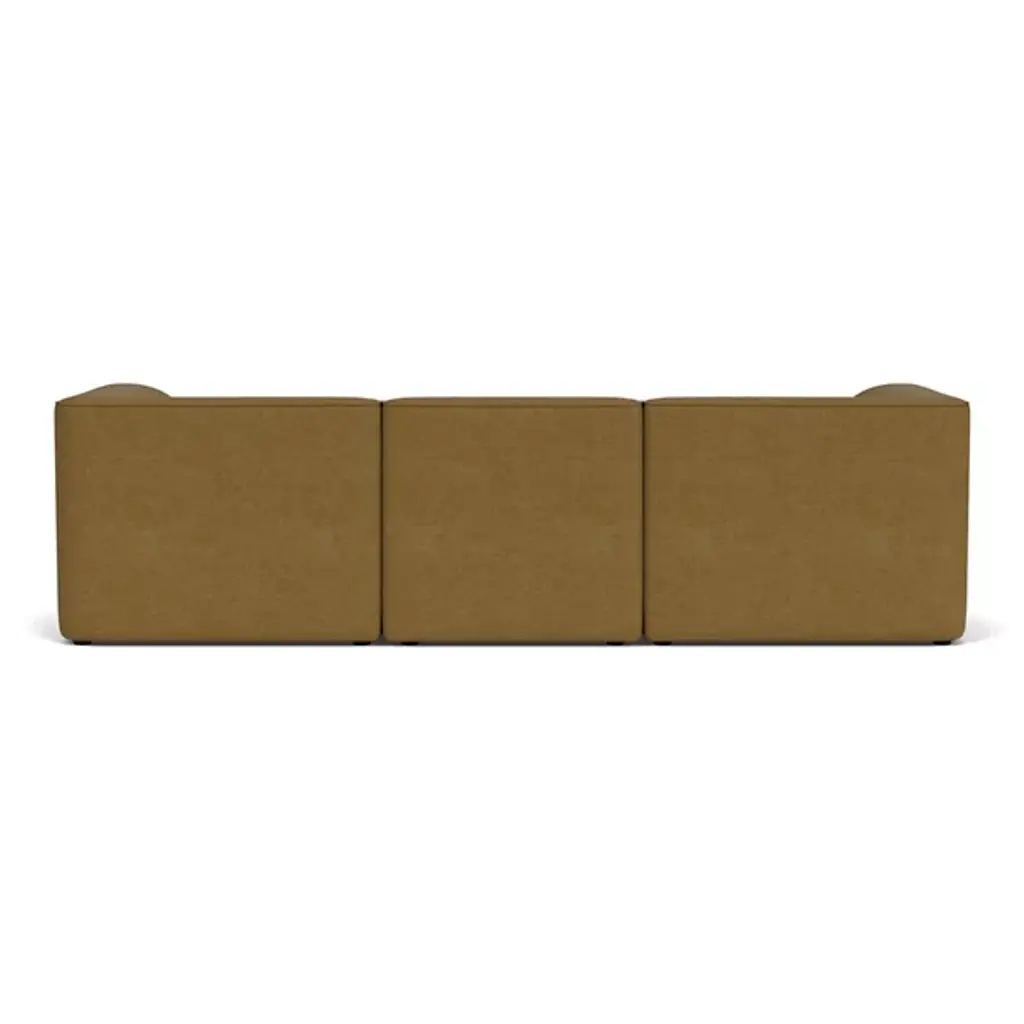Quiet yet expressive. The Eave 3-Seater Sofa Combination from Audo Copenhagen, formerly known as Menu, is a Scandinavian-style, contemporary seating solution. It engages the senses with a lovely set of curves whose depth recalls the jutting eave of a roof. The sofa’s architectural inspiration is fitting for the multi-faceted designers of Norm Architects. The studio uses a ‘soft minimalism’ approach that makes it so that each piece leaves nothing to add or subtract. This piece does so with an engineered wood geometric framework. The position of the seat and backrest gives the user a stately posture with a slight lean. The body leans into the curving back and armrests, whose depth evokes the hanging character of an architectural eave. High resilient foam pairs with fine upholstery to fill out the sofa’s ample comfort.