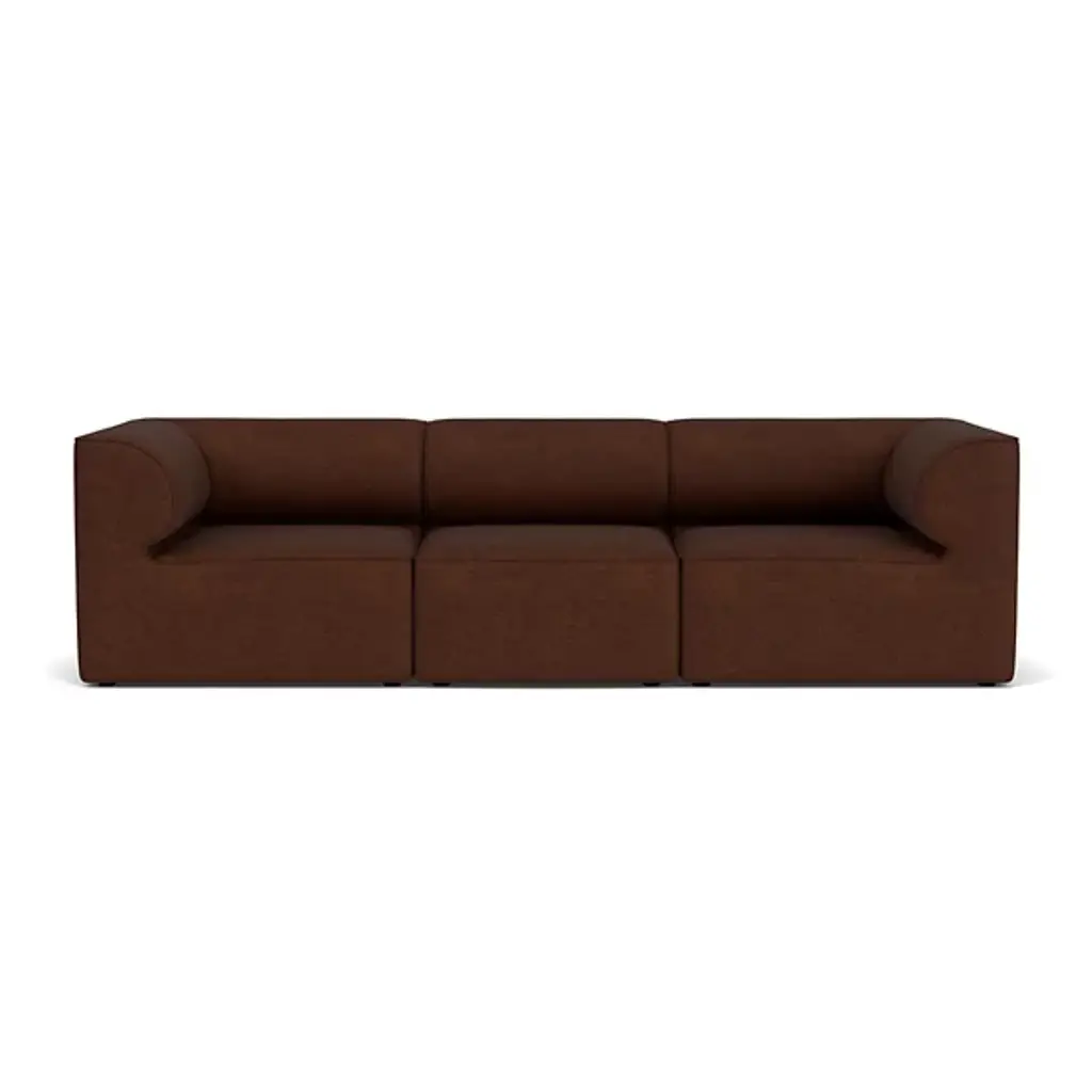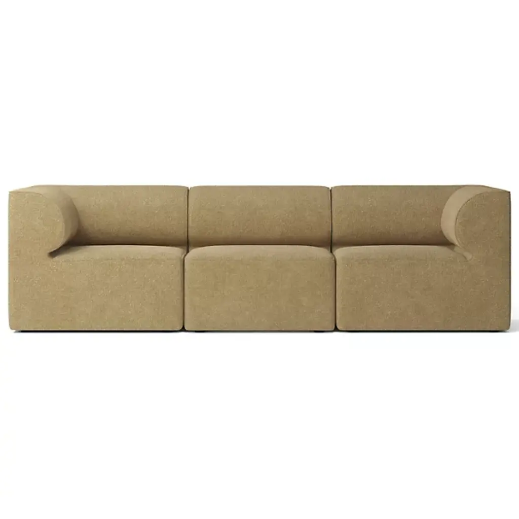 Quiet yet expressive. The Eave 3-Seater Sofa Combination from Audo Copenhagen, formerly known as Menu, is a Scandinavian-style, contemporary seating solution. It engages the senses with a lovely set of curves whose depth recalls the jutting eave of a roof. The sofa’s architectural inspiration is fitting for the multi-faceted designers of Norm Architects. The studio uses a ‘soft minimalism’ approach that makes it so that each piece leaves nothing to add or subtract. This piece does so with an engineered wood geometric framework. The position of the seat and backrest gives the user a stately posture with a slight lean. The body leans into the curving back and armrests, whose depth evokes the hanging character of an architectural eave. High resilient foam pairs with fine upholstery to fill out the sofa’s ample comfort.