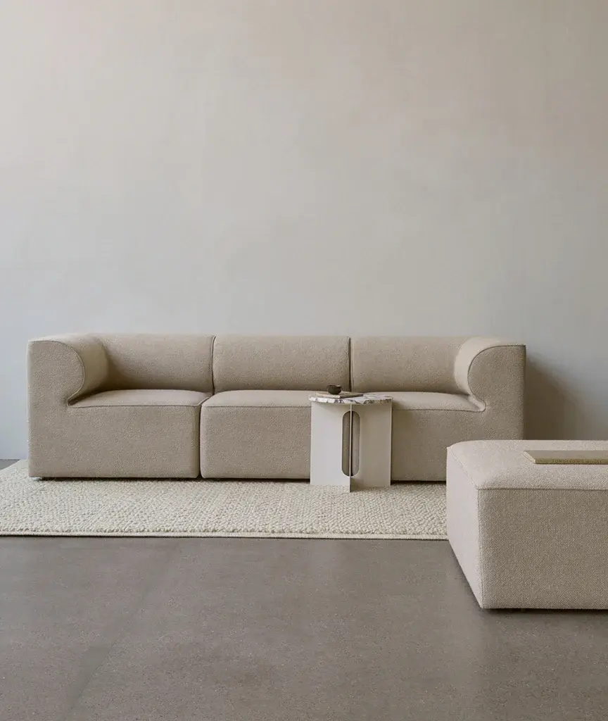 Inspired by architecture Eave Modular Sofa takes its name from “eaves” – the lower edges of the roof that overhang a wall. The sofa’s distinctive detail is its internal “eaves” – curved upholstered armrests that lend the sofa its expressive character. A perfect blend of style and comfort, Eave is a generous sofa that will encourage owners to relax. The seating angle is also ideal for offices or public spaces, enabling the user to sit actively engaging with work.