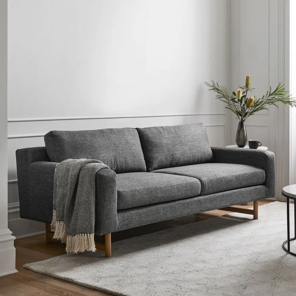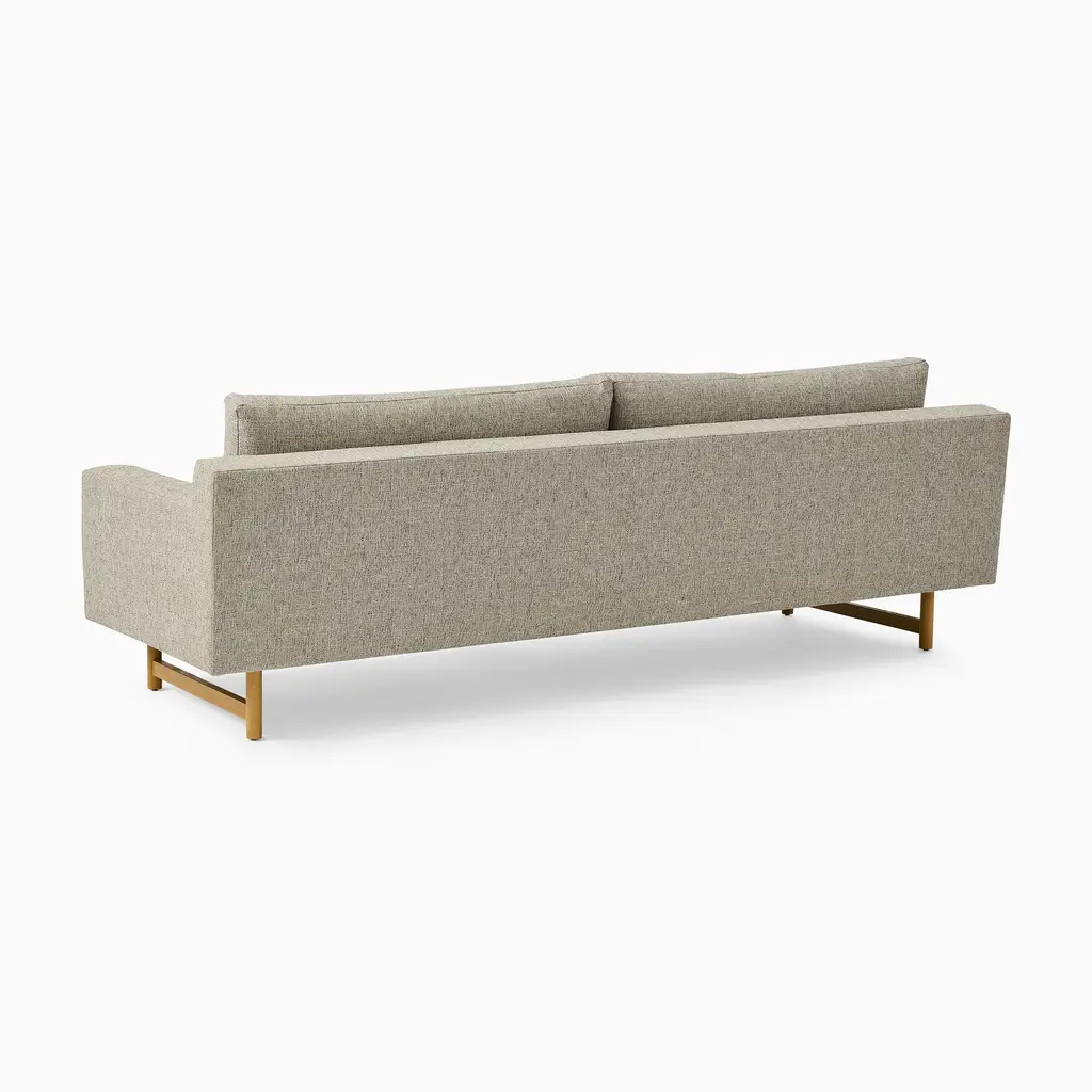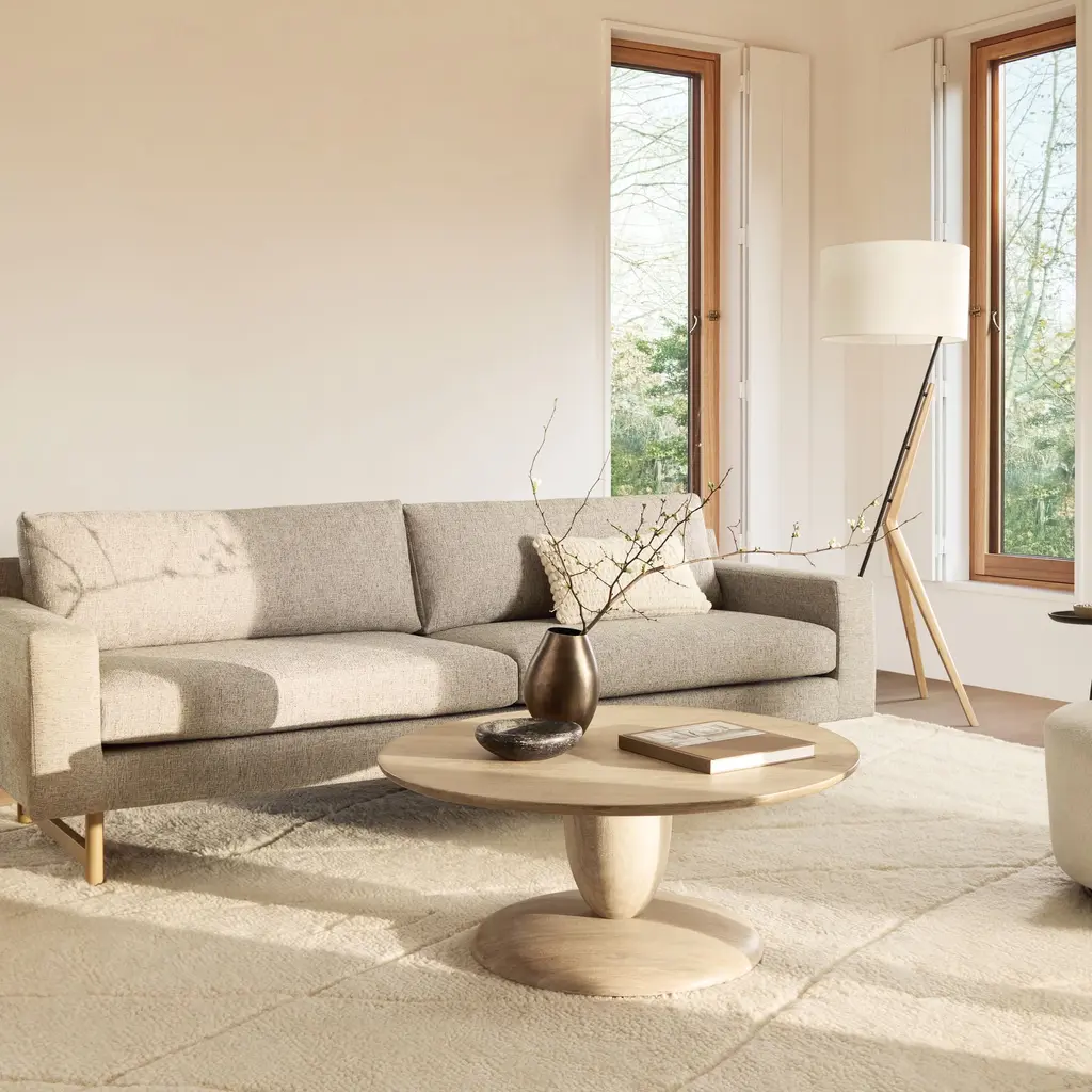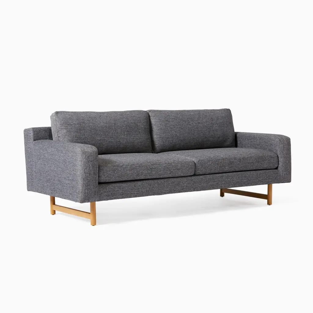 Modern form with stylish, trestle-style legs. Relax into the wide back cushions and low arms. Pick the size that's best for your space.