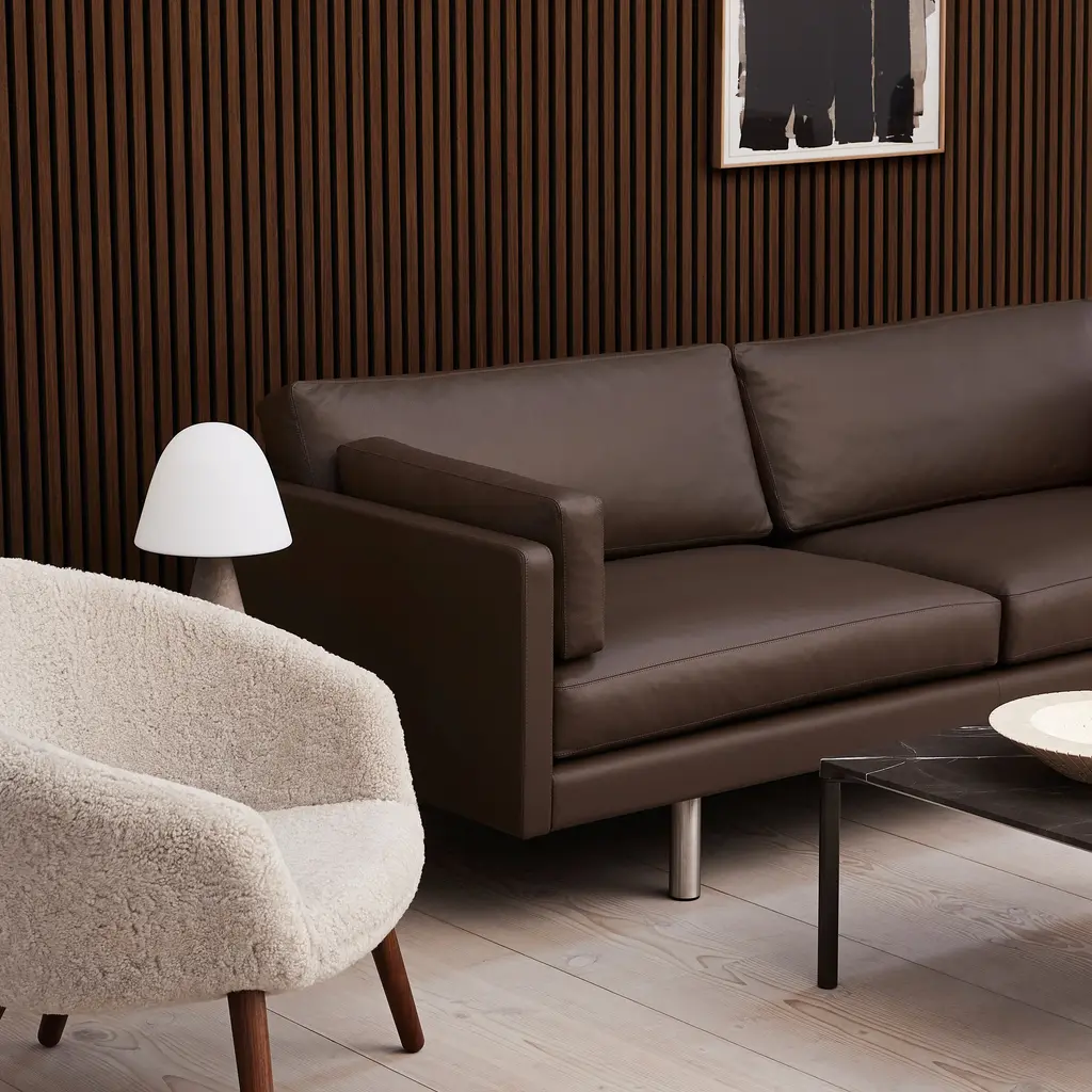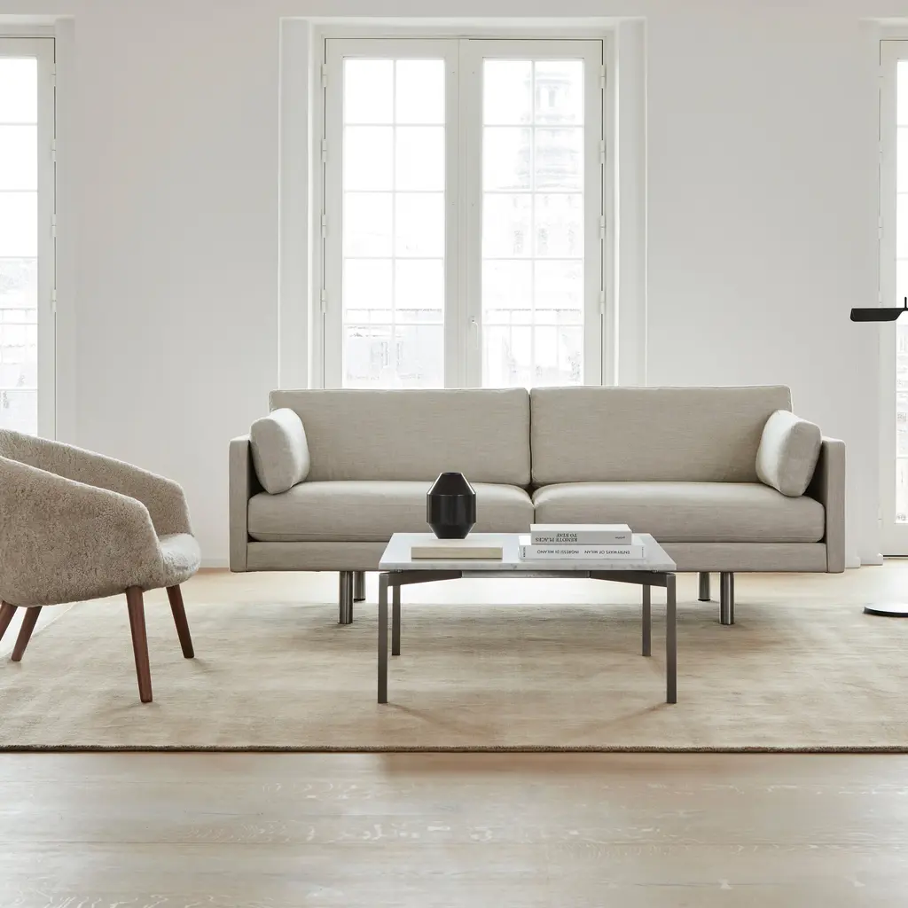 Defined by its clean lines and understated profile, the EJ220 2-Seater Sofa offers a refined seating experience. Its wooden inner frame, reinforced with nozag springs, provides structural integrity, while the cushions—featuring a foam core enveloped in a down wrap—deliver balanced support. The sofa rests on legs crafted from solid wood or steel, offered in a range of finishes.