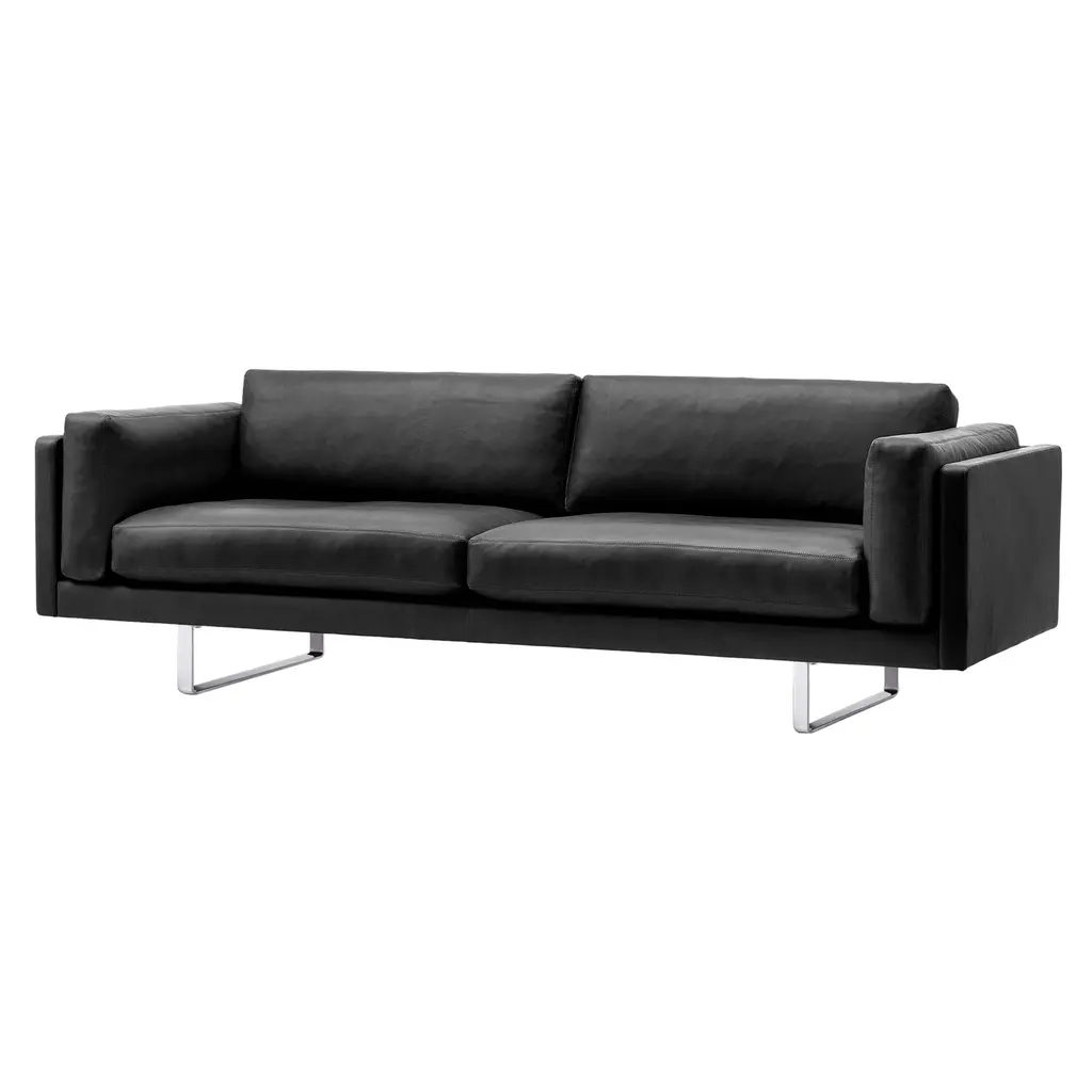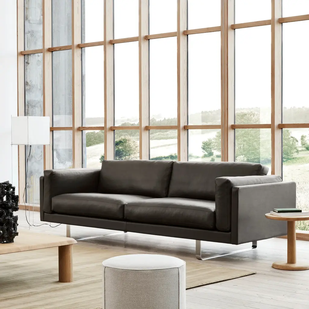 Comfort is at the heart of Erik Jørgensen Studio's boldly proportioned 2 seater with large, soft cushions that invite relaxation. Visually, EJ280's linear frame contrasts with the soft interior for a trim look that's versatile enough for any number of scenarios, from hotel lobbies to private homes. Constructed with a wood frame and boasting cushions in foam core with a down wrap, the sofa has a sleek sledge base in chromed steel to complement the fine leather and fabric upholstery choices.