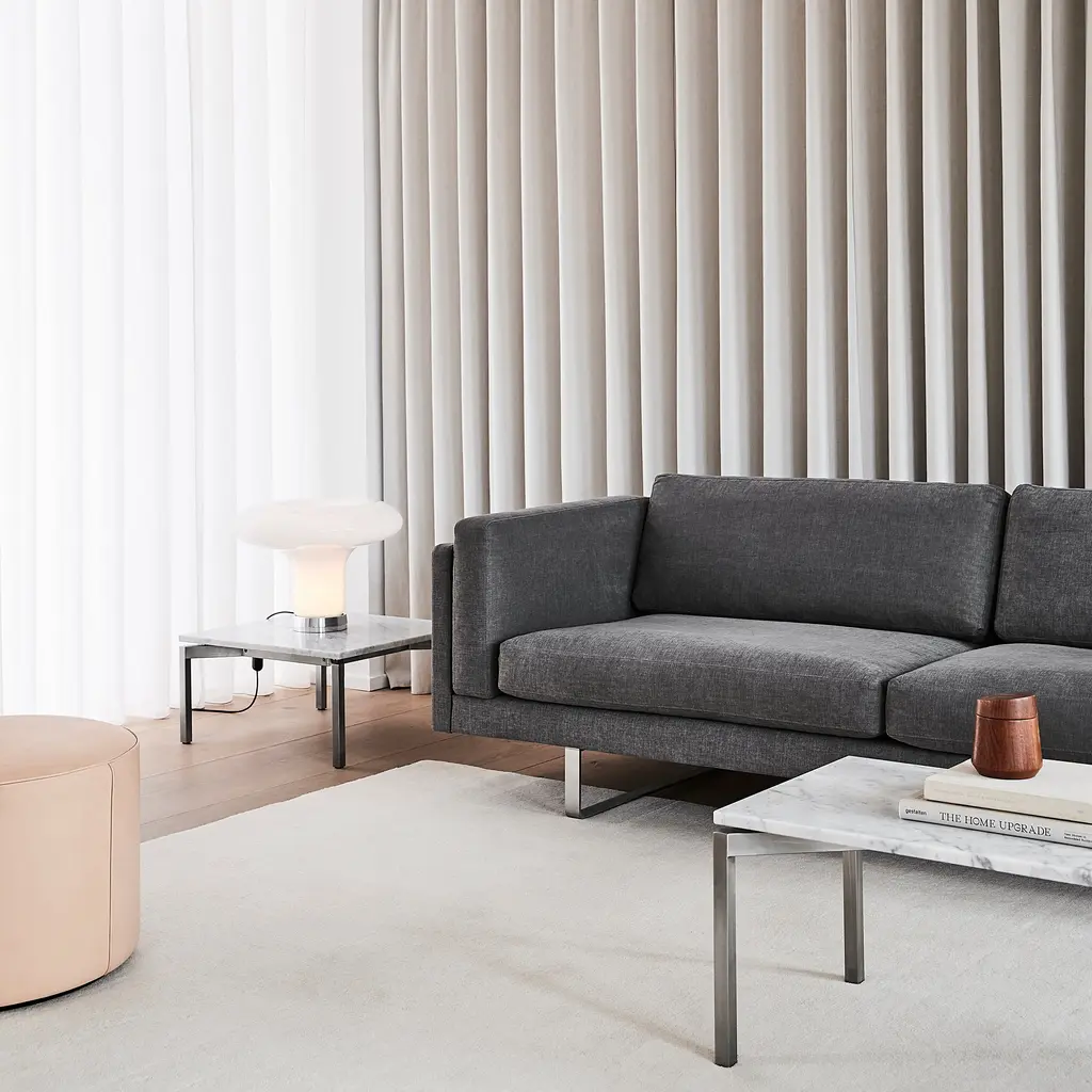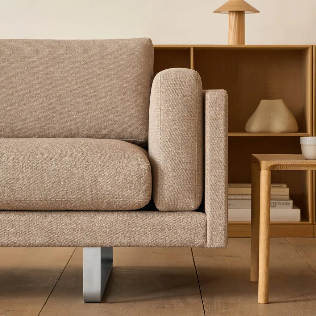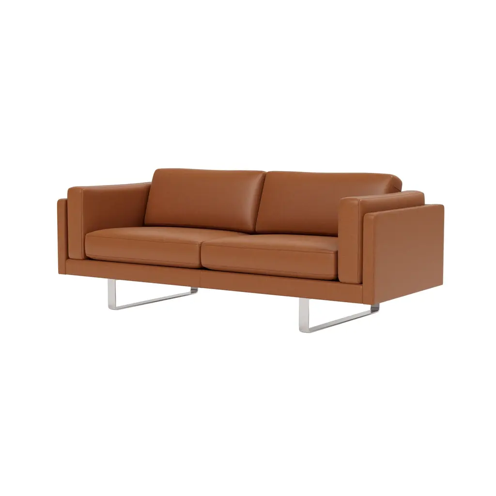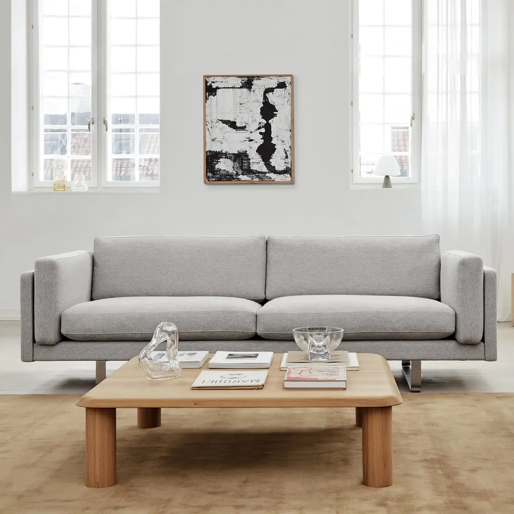 Comfort is at the heart of Erik Jørgensen Studio's boldly proportioned 2 seater with large, soft cushions that invite relaxation. Visually, EJ280's linear frame contrasts with the soft interior for a trim look that's versatile enough for any number of scenarios, from hotel lobbies to private homes. Constructed with a wood frame and boasting cushions in foam core with a down wrap, the sofa has a sleek sledge base in chromed steel to complement the fine leather and fabric upholstery choices.