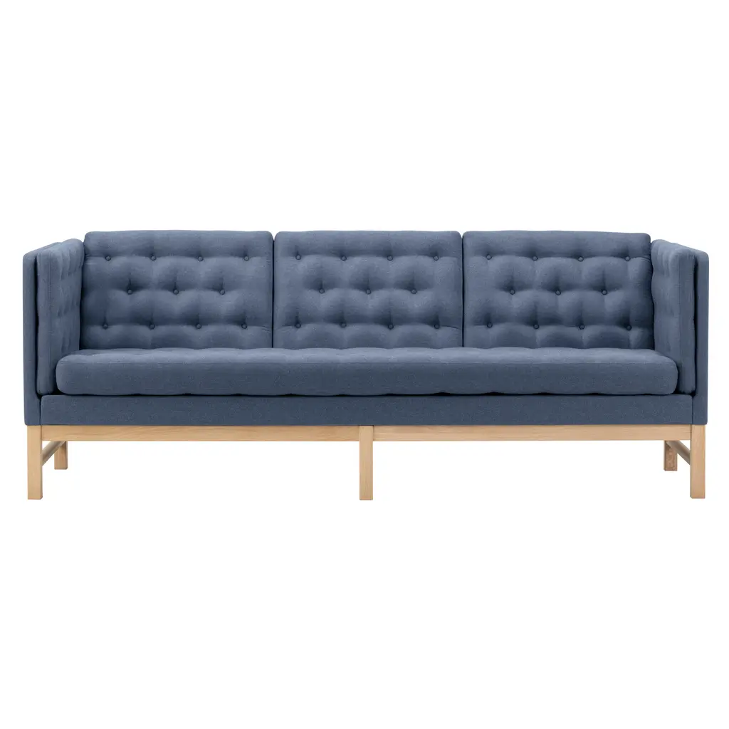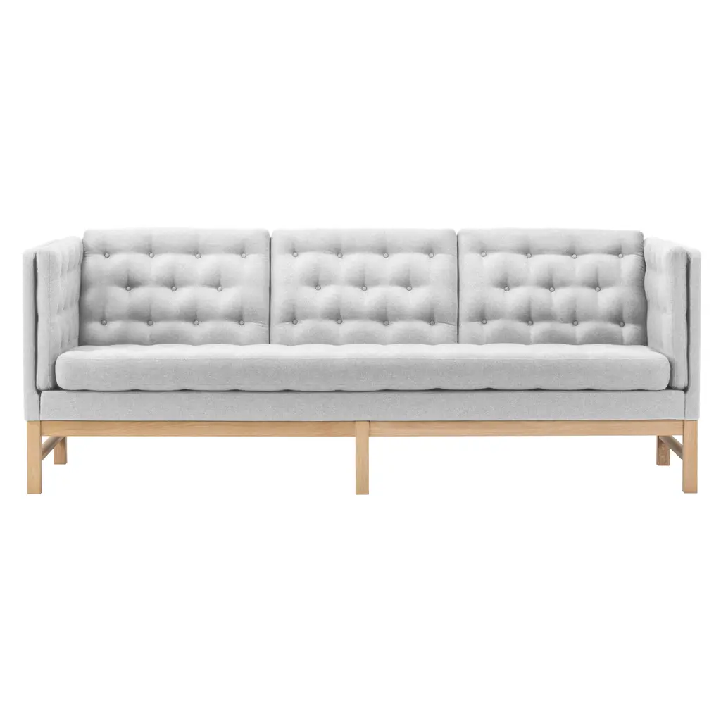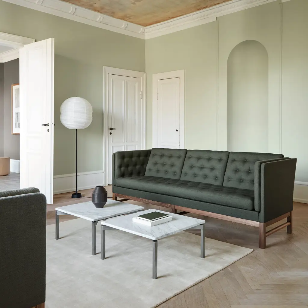 In a 2-seater version, like its smaller sibling sofas, Fredericia's EJ315 is a beloved Danish exemplar with a structured yet highly comfortable profile. Hand-sewn buttons and the geometry of oak or walnut framing bring a graphic dimension to Erik Ole Jørgensen's beautifully crafted mid-70s design. Factor in the depth and dimension of the cushions conceived to ensure the utmost utility and the result is an enduringly iconic sofa, available in a wealth of fine fabric and leather upholstery selections.