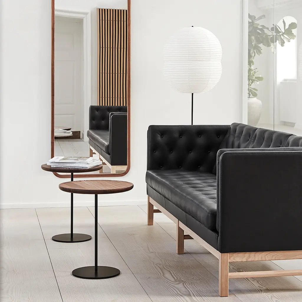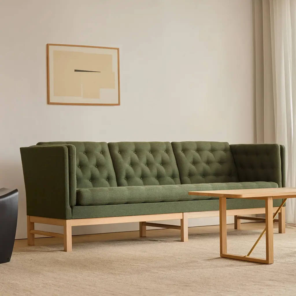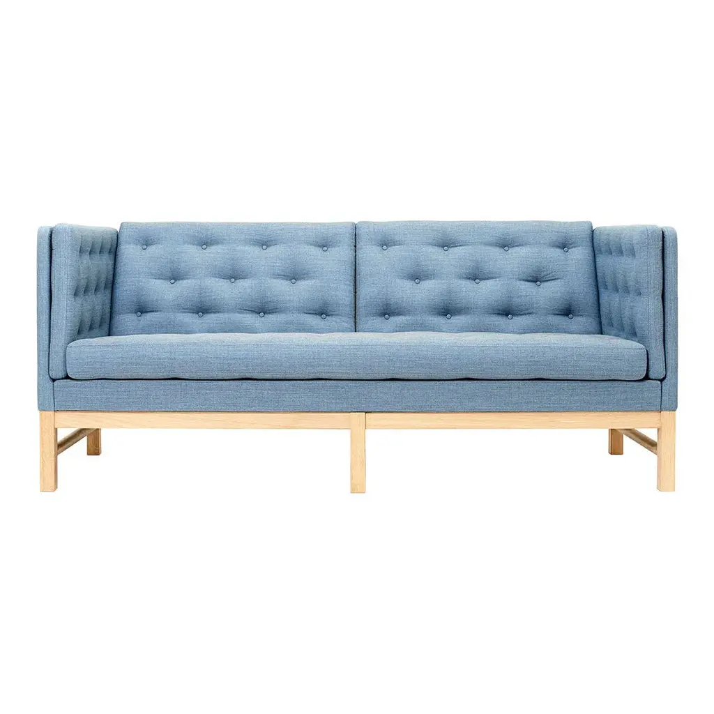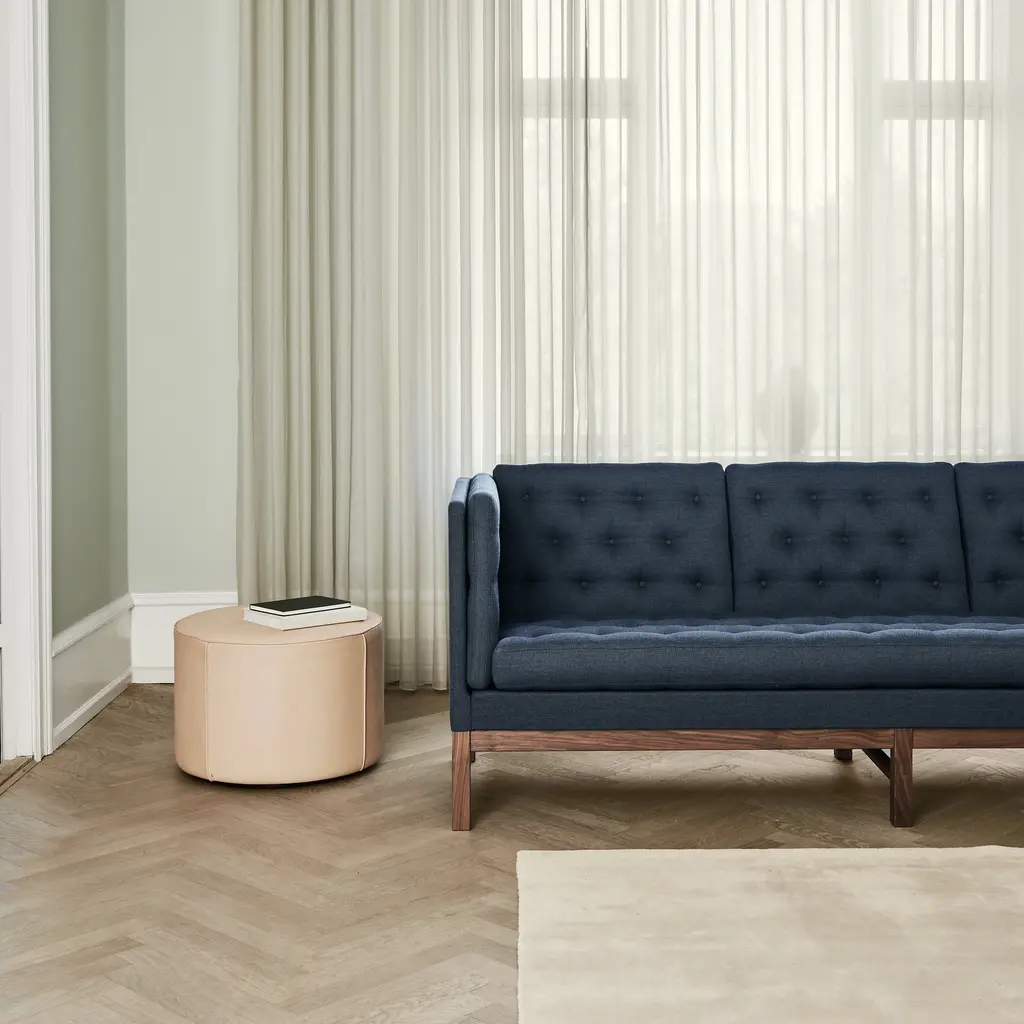 In a 2-seater version, like its smaller sibling sofas, Fredericia's EJ315 is a beloved Danish exemplar with a structured yet highly comfortable profile. Hand-sewn buttons and the geometry of oak or walnut framing bring a graphic dimension to Erik Ole Jørgensen's beautifully crafted mid-70s design. Factor in the depth and dimension of the cushions conceived to ensure the utmost utility and the result is an enduringly iconic sofa, available in a wealth of fine fabric and leather upholstery selections.