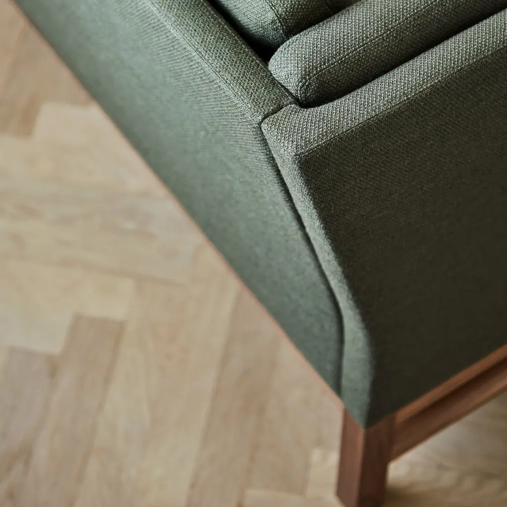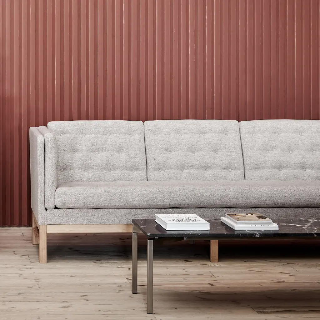 In a 2-seater version, like its smaller sibling sofas, Fredericia's EJ315 is a beloved Danish exemplar with a structured yet highly comfortable profile. Hand-sewn buttons and the geometry of oak or walnut framing bring a graphic dimension to Erik Ole Jørgensen's beautifully crafted mid-70s design. Factor in the depth and dimension of the cushions conceived to ensure the utmost utility and the result is an enduringly iconic sofa, available in a wealth of fine fabric and leather upholstery selections.
