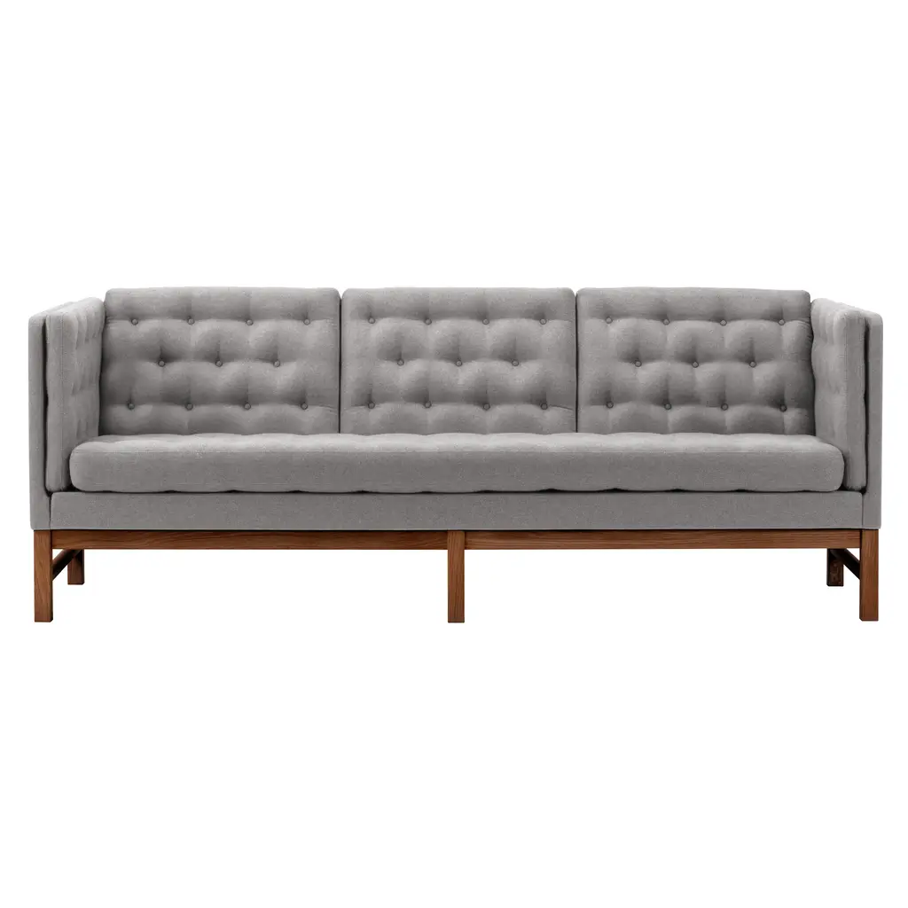 In a 2-seater version, like its smaller sibling sofas, Fredericia's EJ315 is a beloved Danish exemplar with a structured yet highly comfortable profile. Hand-sewn buttons and the geometry of oak or walnut framing bring a graphic dimension to Erik Ole Jørgensen's beautifully crafted mid-70s design. Factor in the depth and dimension of the cushions conceived to ensure the utmost utility and the result is an enduringly iconic sofa, available in a wealth of fine fabric and leather upholstery selections.