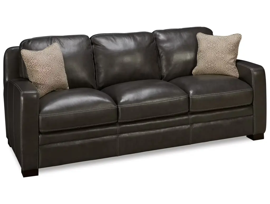 Give your living room the makeover it needs with the Simon Li El Paso Leather Sofa. It is made of a soft and supple top-grain leather. A stylish sofa, it incorporates plush pillow backs, box seat cushions, and track arms for comfort, while an allover sheen adds to its allure. Two Handcraft toss pillows give it an inviting look, and sturdy block legs offer support to this transitional-style sofa.