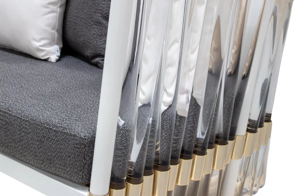 Elegant Houdini Patio Couch With Acrylic Details And Gold Stainless Steel Frame