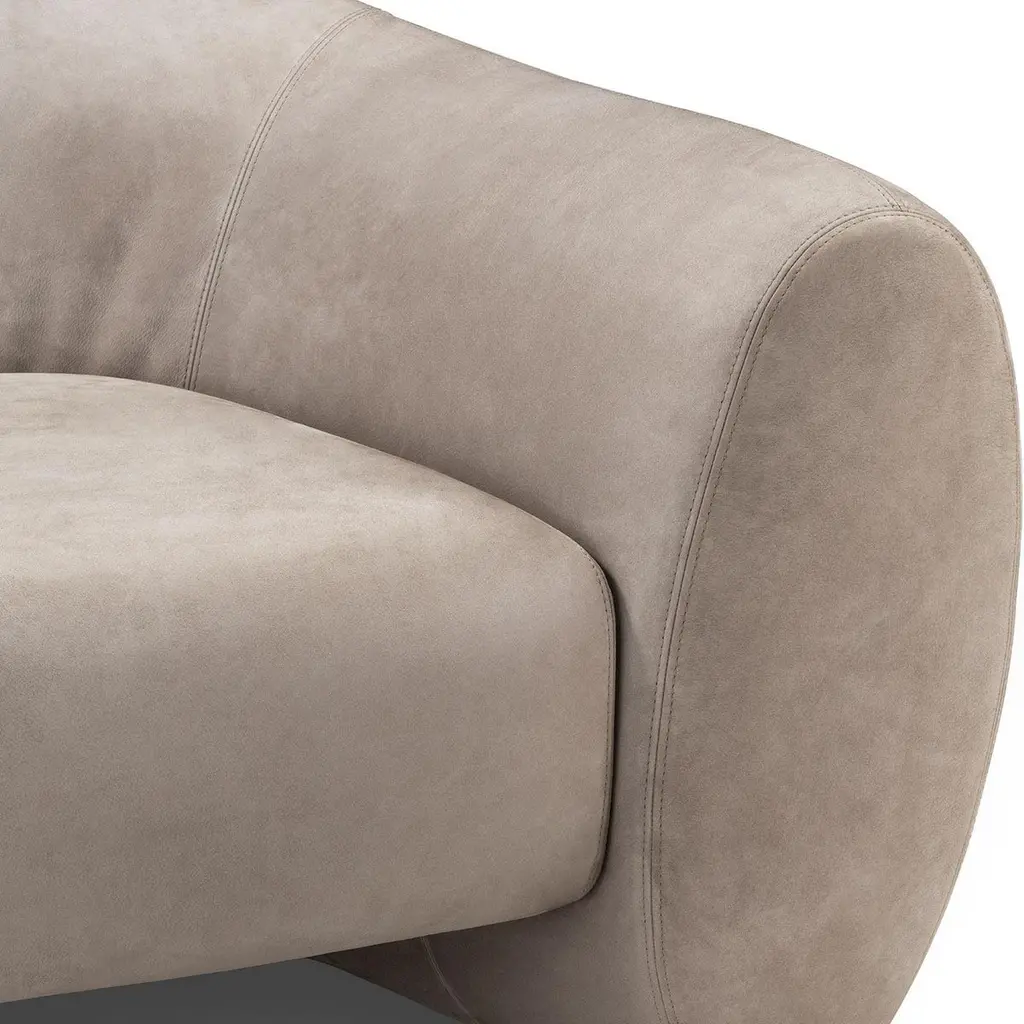 As quiet as it is enveloping, this elegant sofa of modern inspiration welcomes up to three people within its wide seat outlined by a plump shell gently sloping at the sides. The generous stuffing, paired with a fine, neutral-toned Kairos leather, ensures long-lasting comfort whether it is shared with friends for a drink or enjoyed solo stretching out one's legs in the company of a good book. Cushions not included. For the US market, please contact the Concierge for CAL TB 117 certified fabrics.