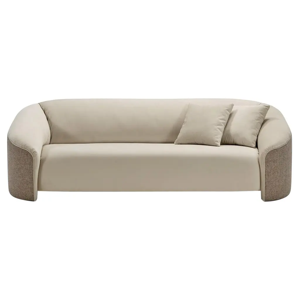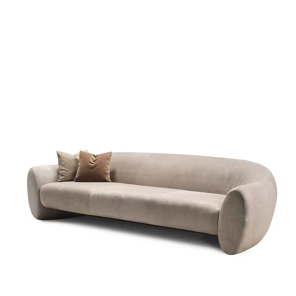 As quiet as it is enveloping, this elegant sofa of modern inspiration welcomes up to three people within its wide seat outlined by a plump shell gently sloping at the sides. The generous stuffing, paired with a fine, neutral-toned Kairos leather, ensures long-lasting comfort whether it is shared with friends for a drink or enjoyed solo stretching out one's legs in the company of a good book. Cushions not included. For the US market, please contact the Concierge for CAL TB 117 certified fabrics.