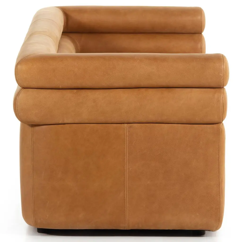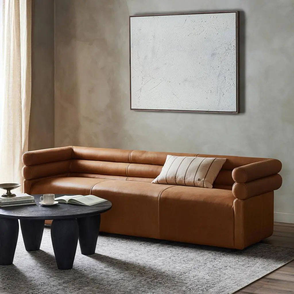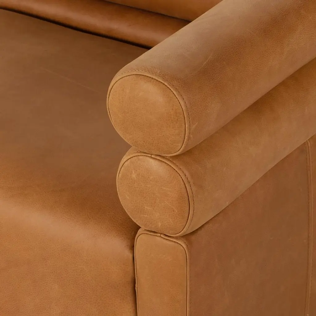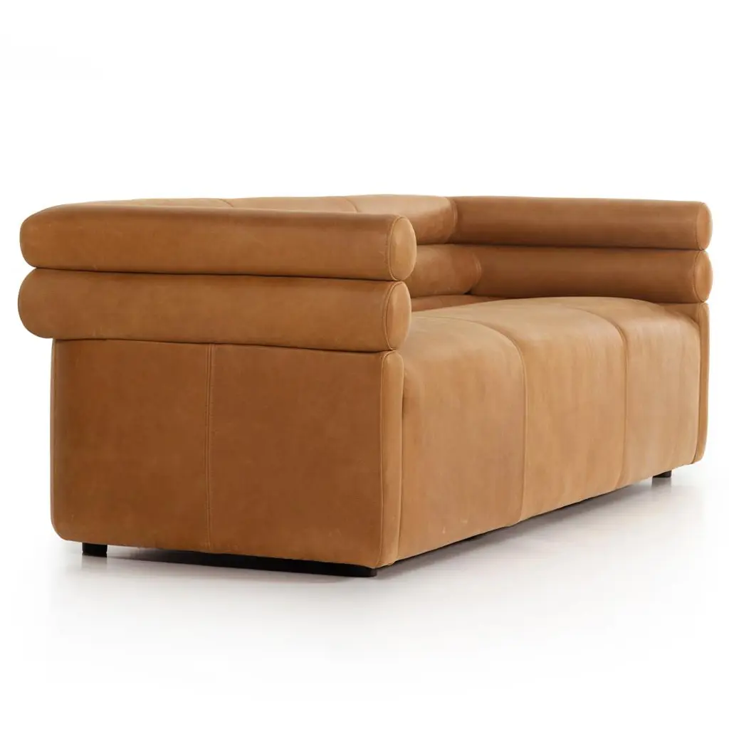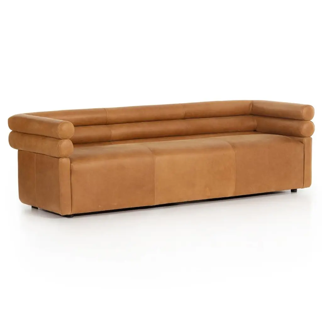 Eliana Mid Century Modern Palermo Cognac Upholstered Leather Sofa - 88"w