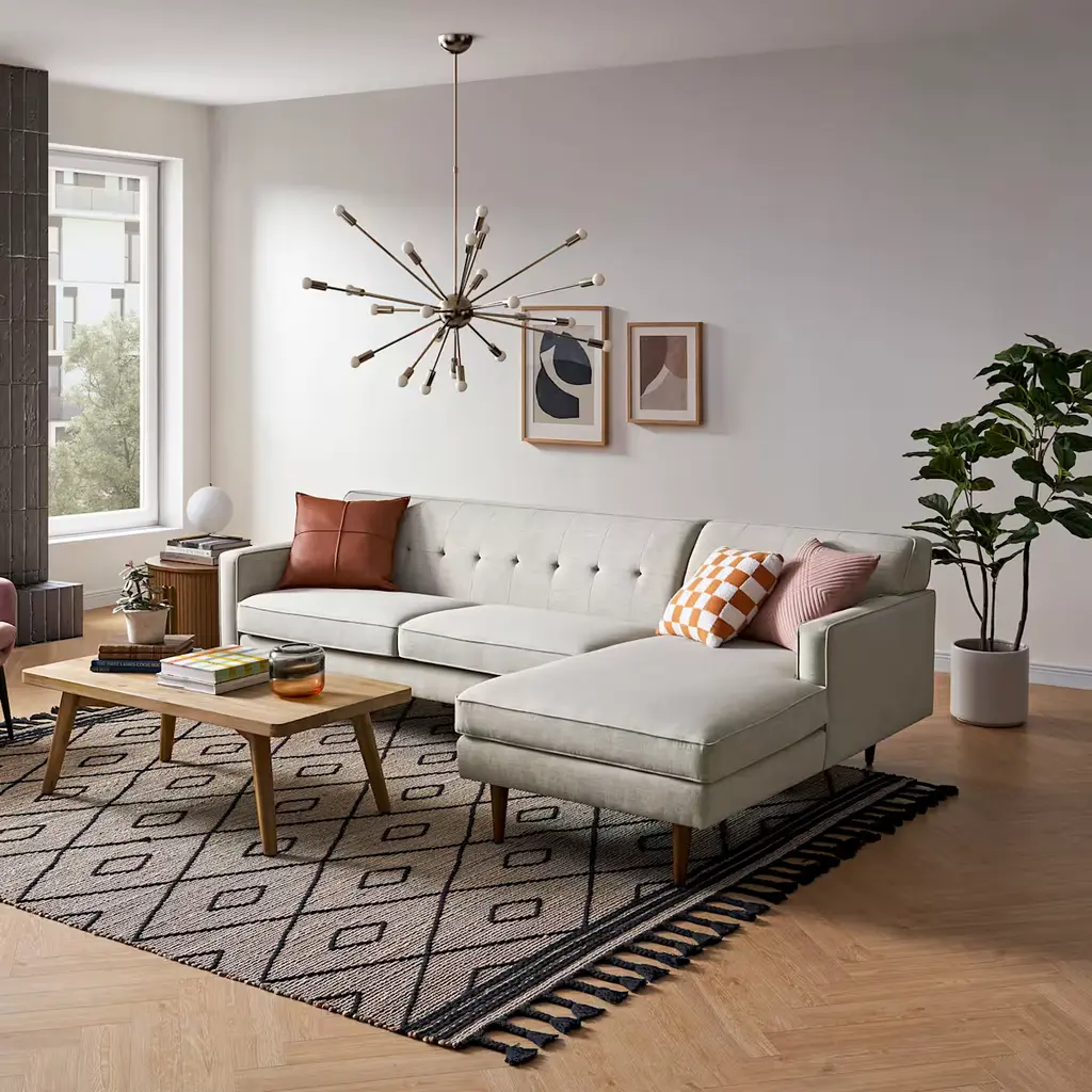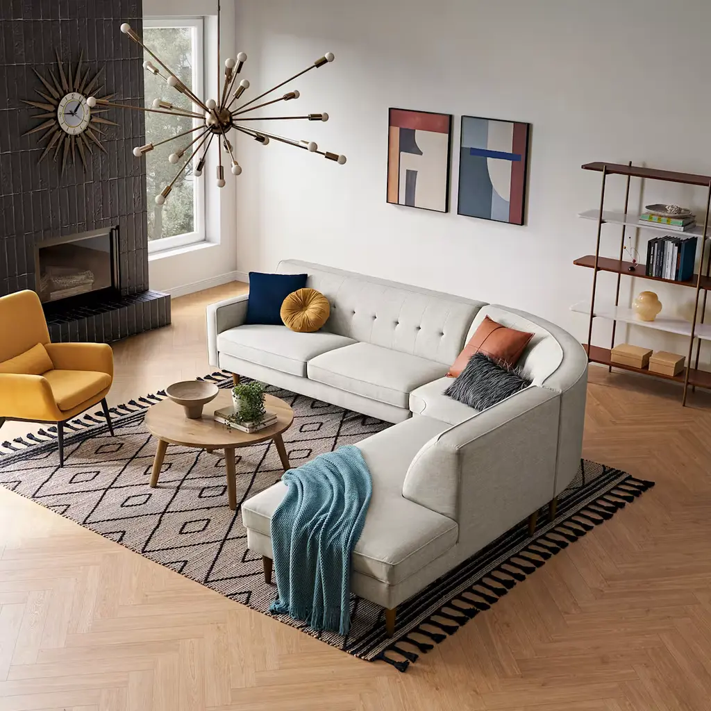 Clean lines and a sleek silhouette make Elias a classic mid-century modern option. Lean back and unwind on tufted back cushions.