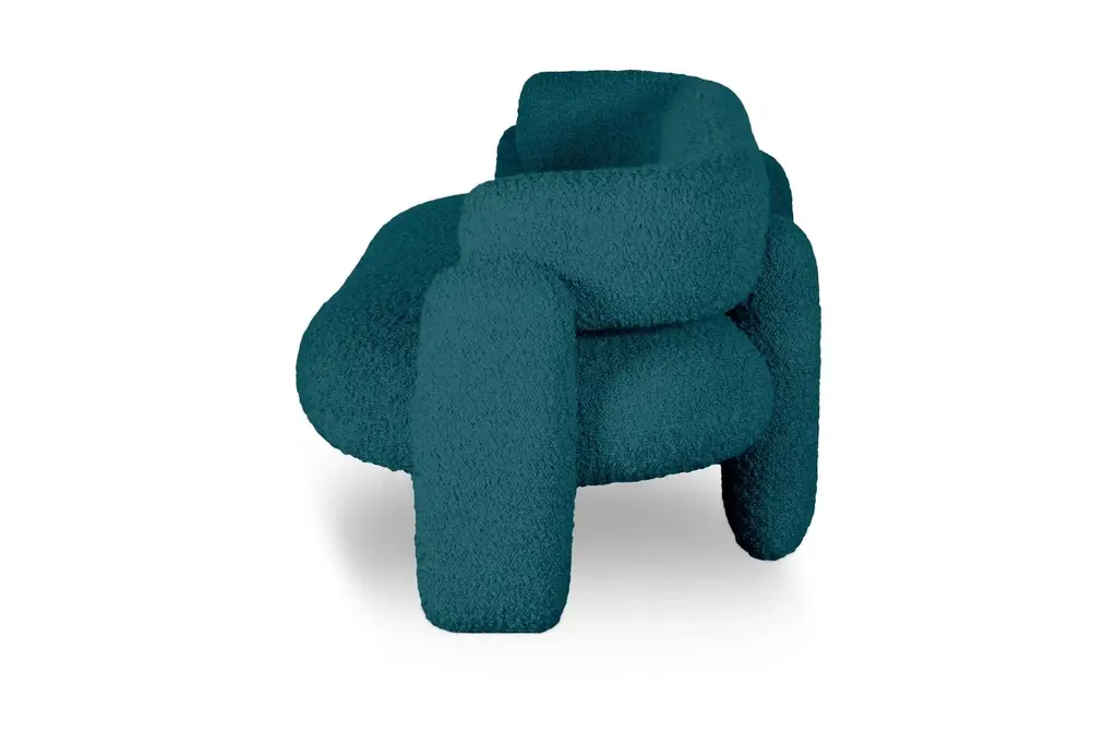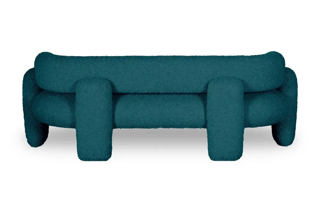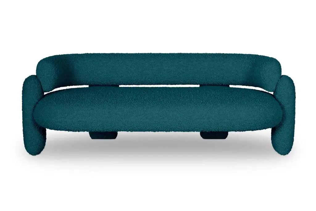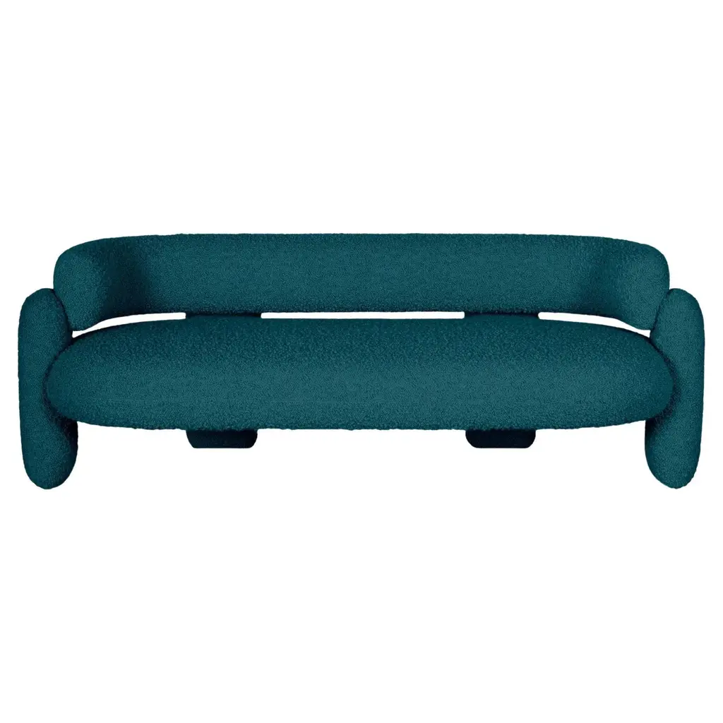 Embrace cormo azure sofa by royal stranger. Dimensions: w 200 x h 70 x d 90 cm. Seat height 47 cm. Materials: solid wood frame, foam, upholstery. Available in other royal stranger’s fabrics and in com. Embrace sofa is fond of neat lines. It encapsulates unique curvy shapes that spaciously entwine around the human body. These curves are seen in the ample seat and elongated backrest, as well as in the four legs on the sides and the back of the sofa. The design blends comfort and warmth into your room, while simultaneously holding a unique, smooth aesthetic. Embrace sofa will bond with joyful meetings, book readings, and long naps – allowing a contagious sentiment of serenity to dwell in every self. this piece is attributed to the mentioned designer/maker. It has no attribution mark and no official proof of authenticity, however it is well documented in design history. I take full responsibility for any authenticity issues arising from misattribution