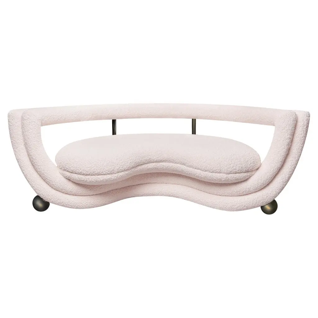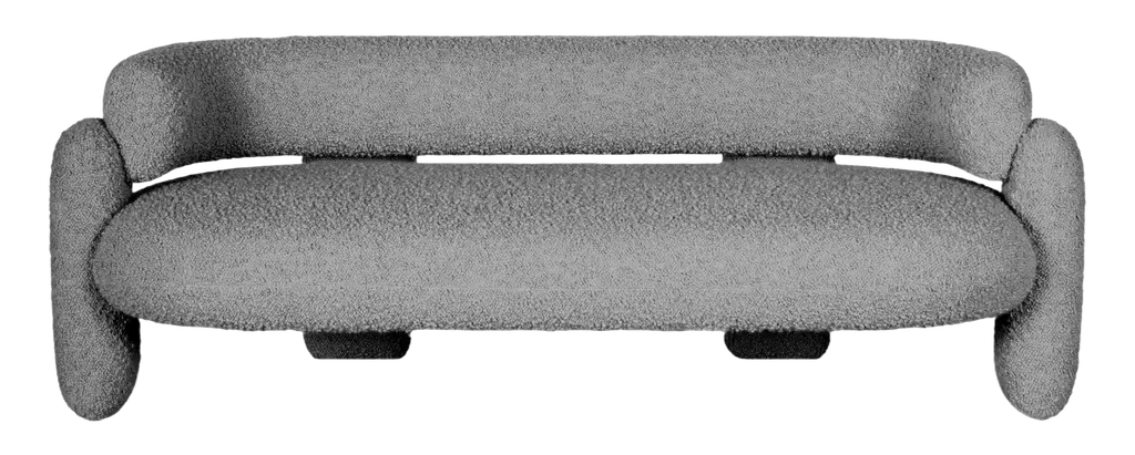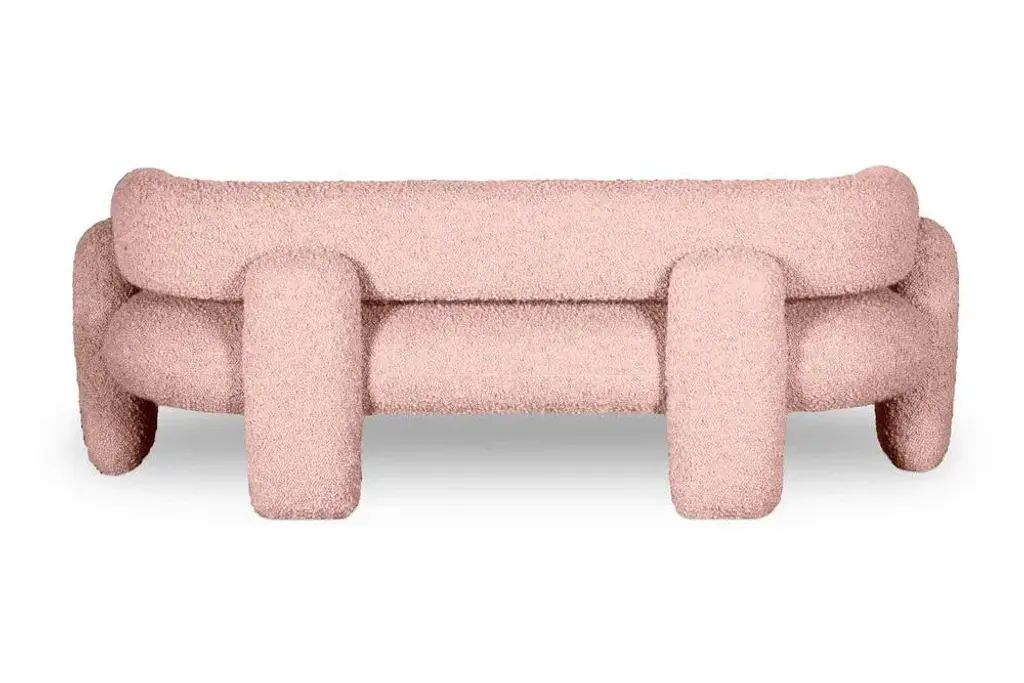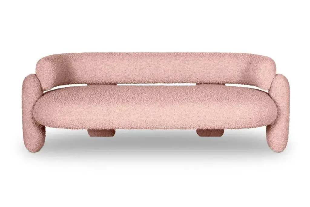 Embrace cormo blossom sofa by Royal Stranger Dimensions: W 200 x H 70 x D 90 cm. Seat Height 47 cm. Materials: Solid wood frame, foam, upholstery. Embrace sofa is fond of neat lines. It encapsulates unique curvy shapes that spaciously entwine around the human body. These curves are seen in the ample seat and elongated backrest, as well as in the four legs on the sides and the back of the sofa. The design blends comfort and warmth into your room, while simultaneously holding a unique, smooth aesthetic. Embrace sofa will bond with joyful meetings, book readings, and long naps – allowing a contagious sentiment of serenity to dwell in every self.