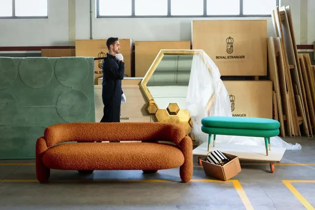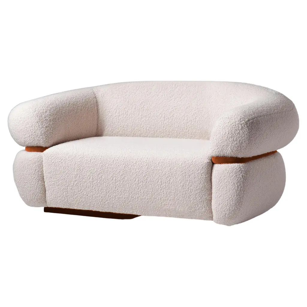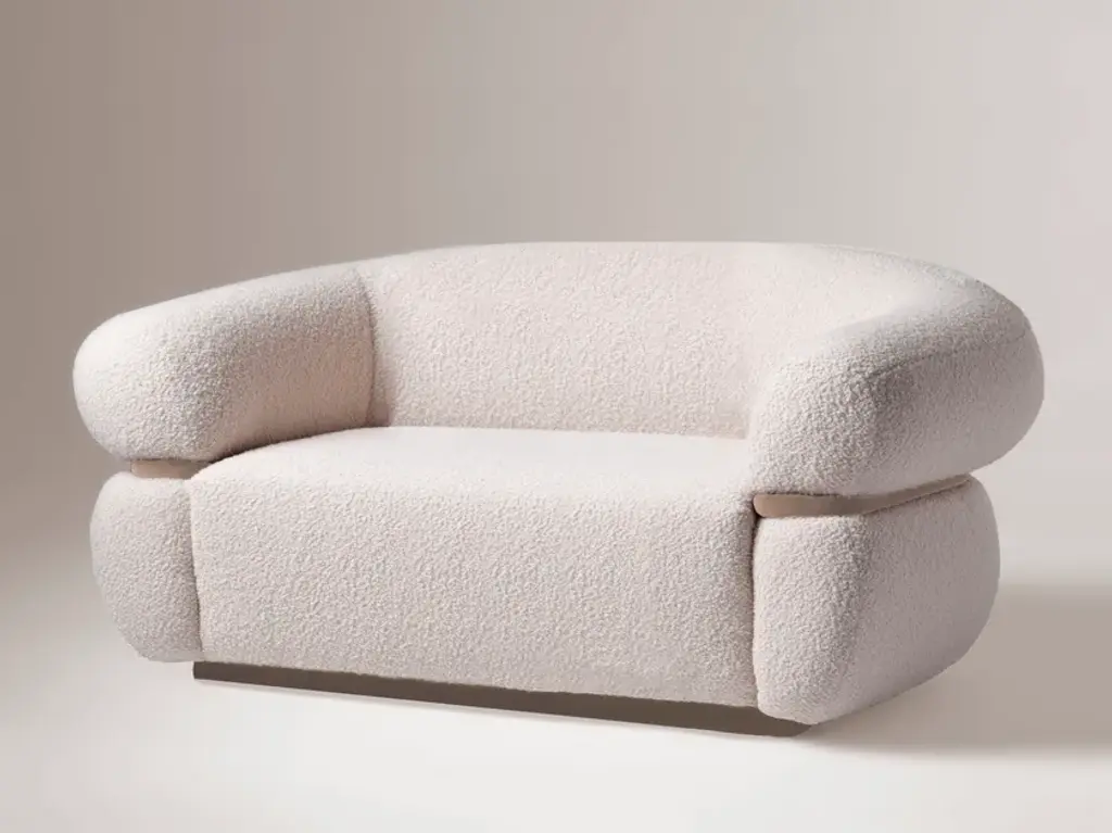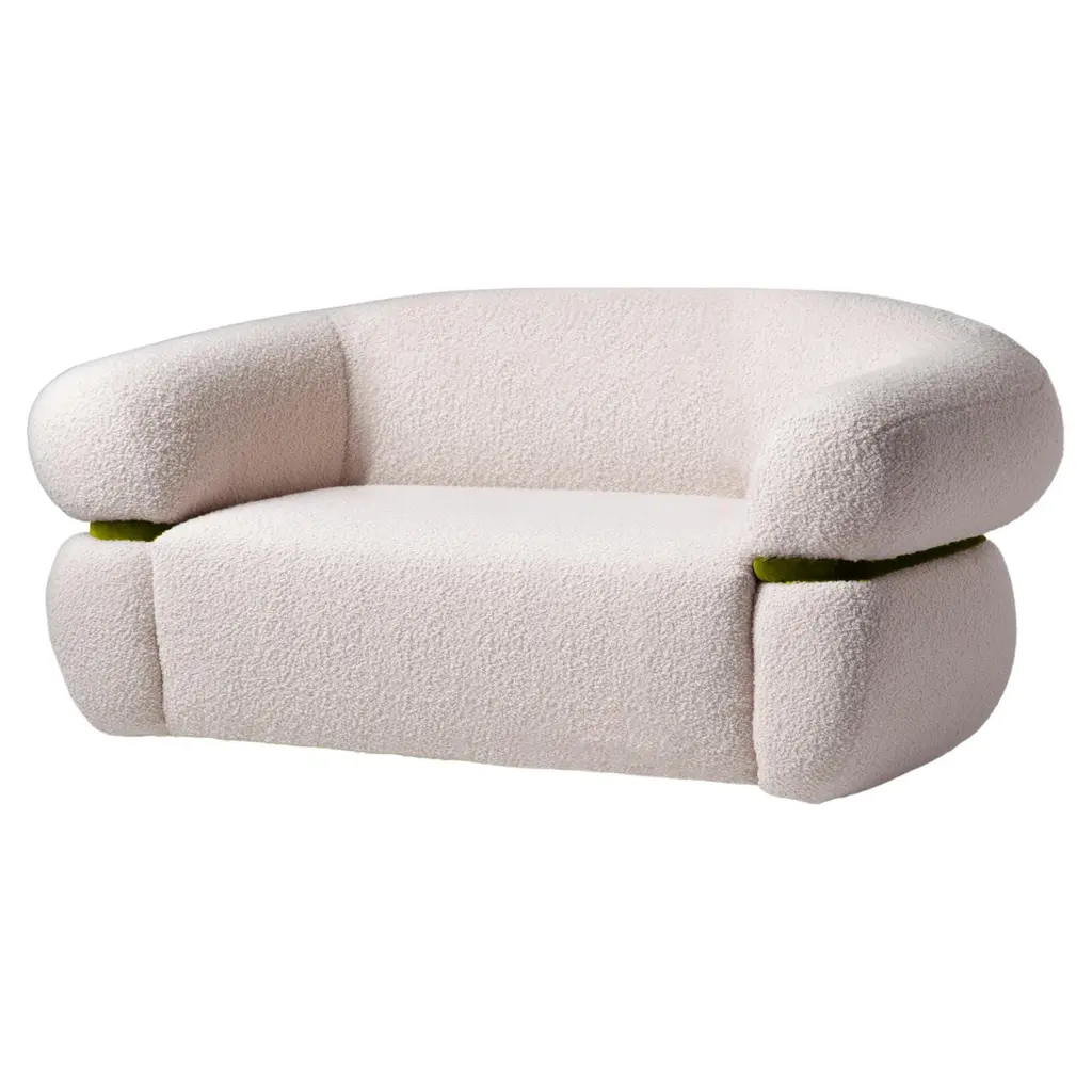 Embrace cormo blossom sofa by Royal Stranger Dimensions: W 200 x H 70 x D 90 cm. Seat Height 47 cm. Materials: Solid wood frame, foam, upholstery. Embrace sofa is fond of neat lines. It encapsulates unique curvy shapes that spaciously entwine around the human body. These curves are seen in the ample seat and elongated backrest, as well as in the four legs on the sides and the back of the sofa. The design blends comfort and warmth into your room, while simultaneously holding a unique, smooth aesthetic. Embrace sofa will bond with joyful meetings, book readings, and long naps – allowing a contagious sentiment of serenity to dwell in every self.
