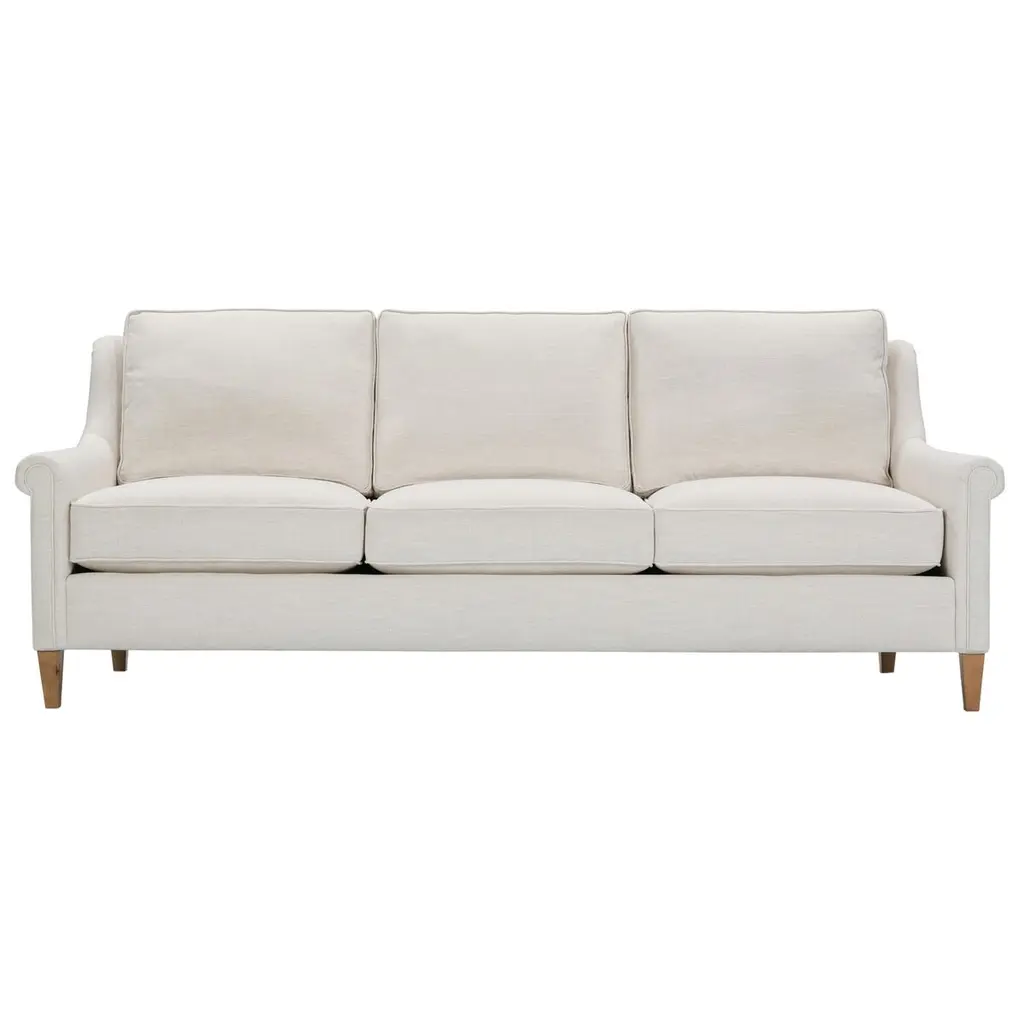 The Emerson Sofa, Natural, offers a luxurious seating experience with its chenile-like feel. Designed with cloud cushions that will naturally flatten, wrinkle, and soften over time, this sofa invites you to fluff the cushions just as you would with your favorite feather or down pillow. To maintain its fresh appearance and prolong cushion life, regularly turn and rotate the cushions. For added comfort, you can adjust the cushion core and polyester wrap by unzipping the casing and regulating the fit. The Emerson Sofa also includes two welted 20" pillows, enhancing its elegant and inviting appeal.
