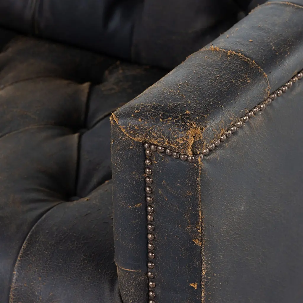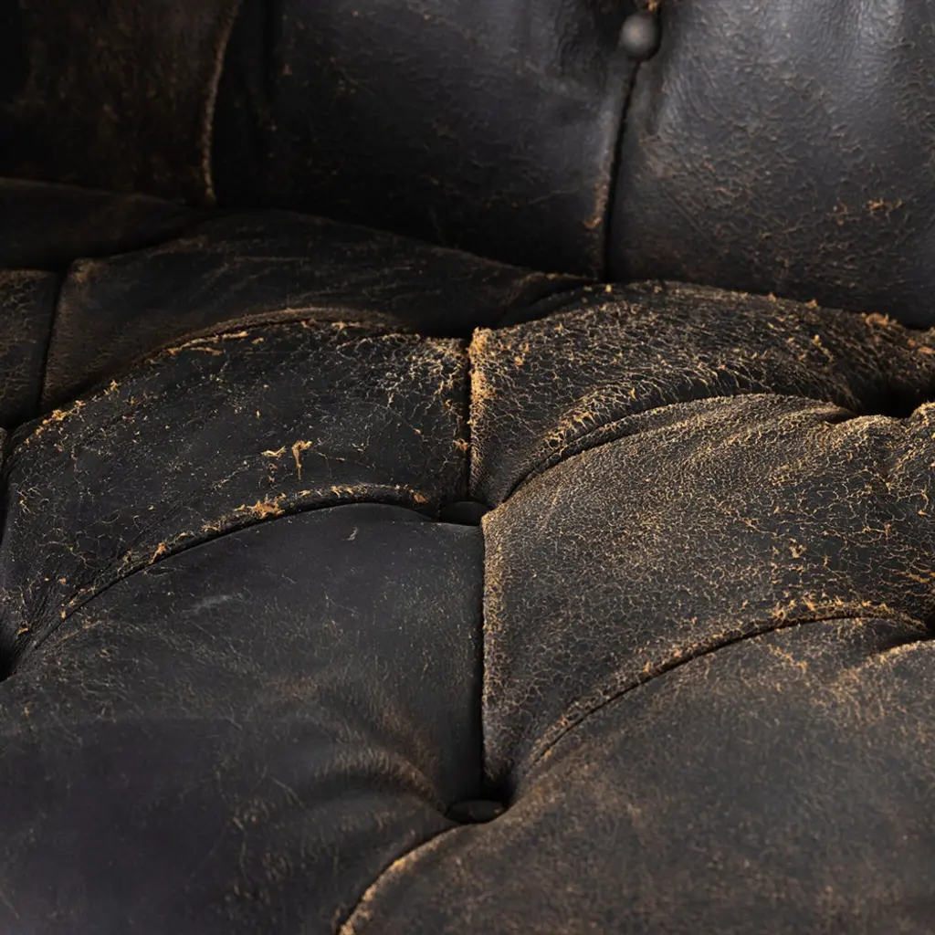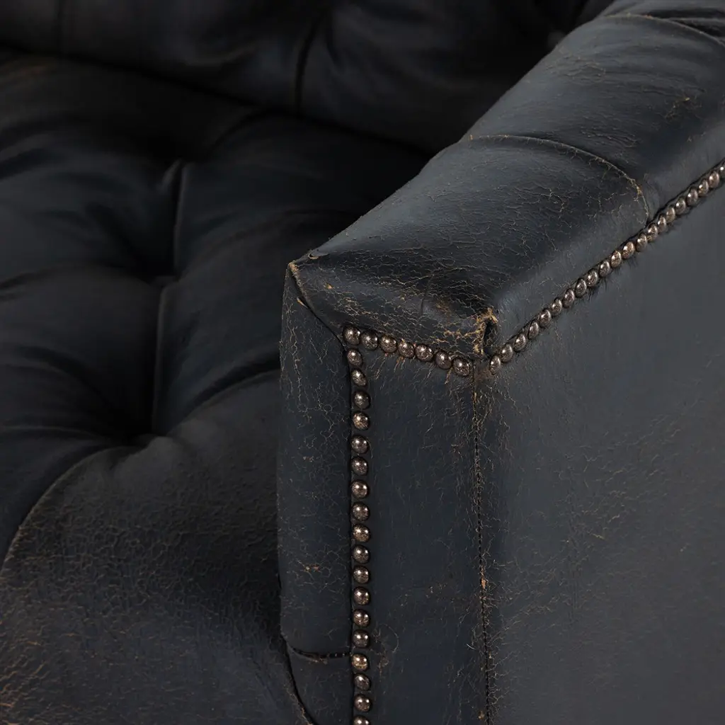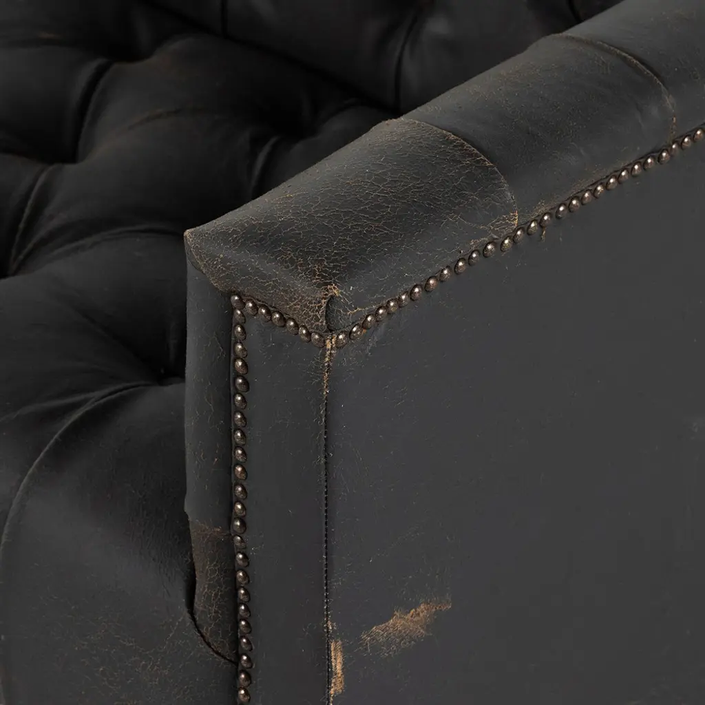 Emmy Rustic Vintage Black Leather Tufted Nailhead Trim Sofa - Large - 95"w