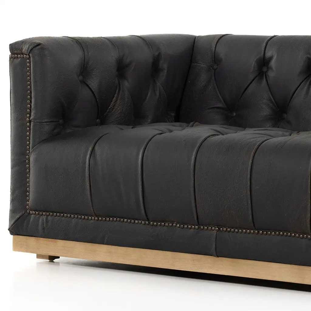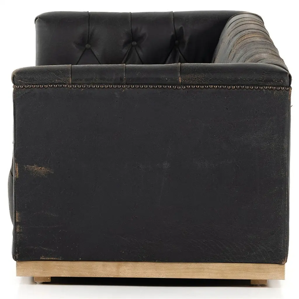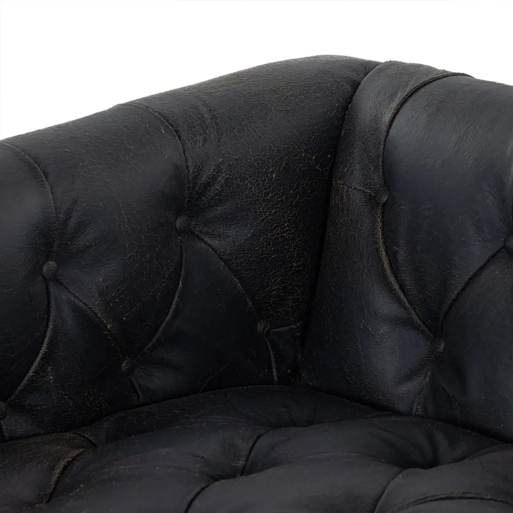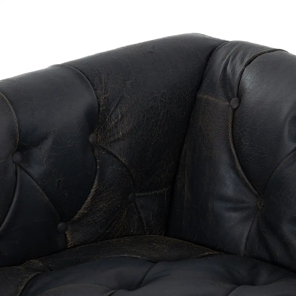 Emmy Rustic Vintage Black Leather Tufted Nailhead Trim Sofa - Large - 95"w