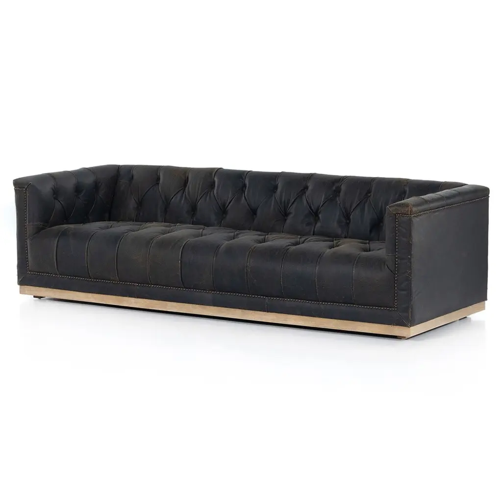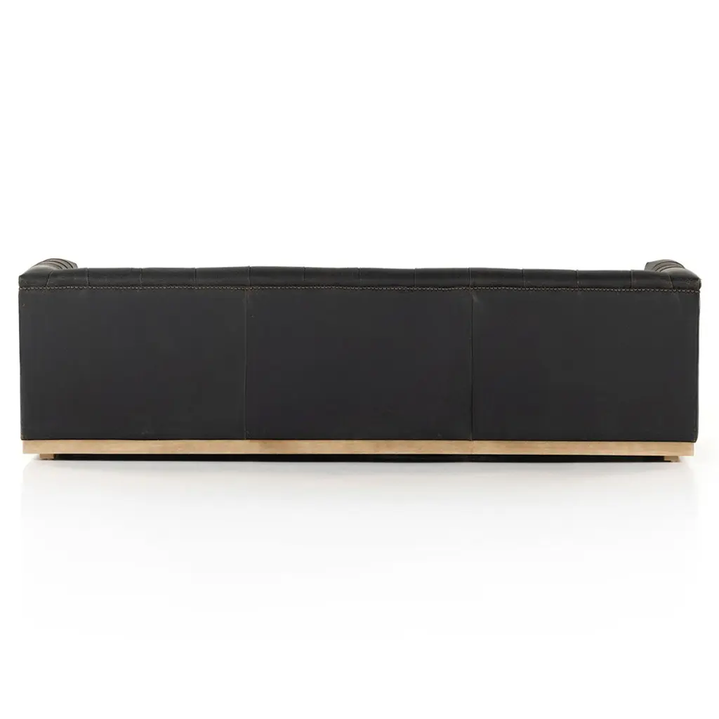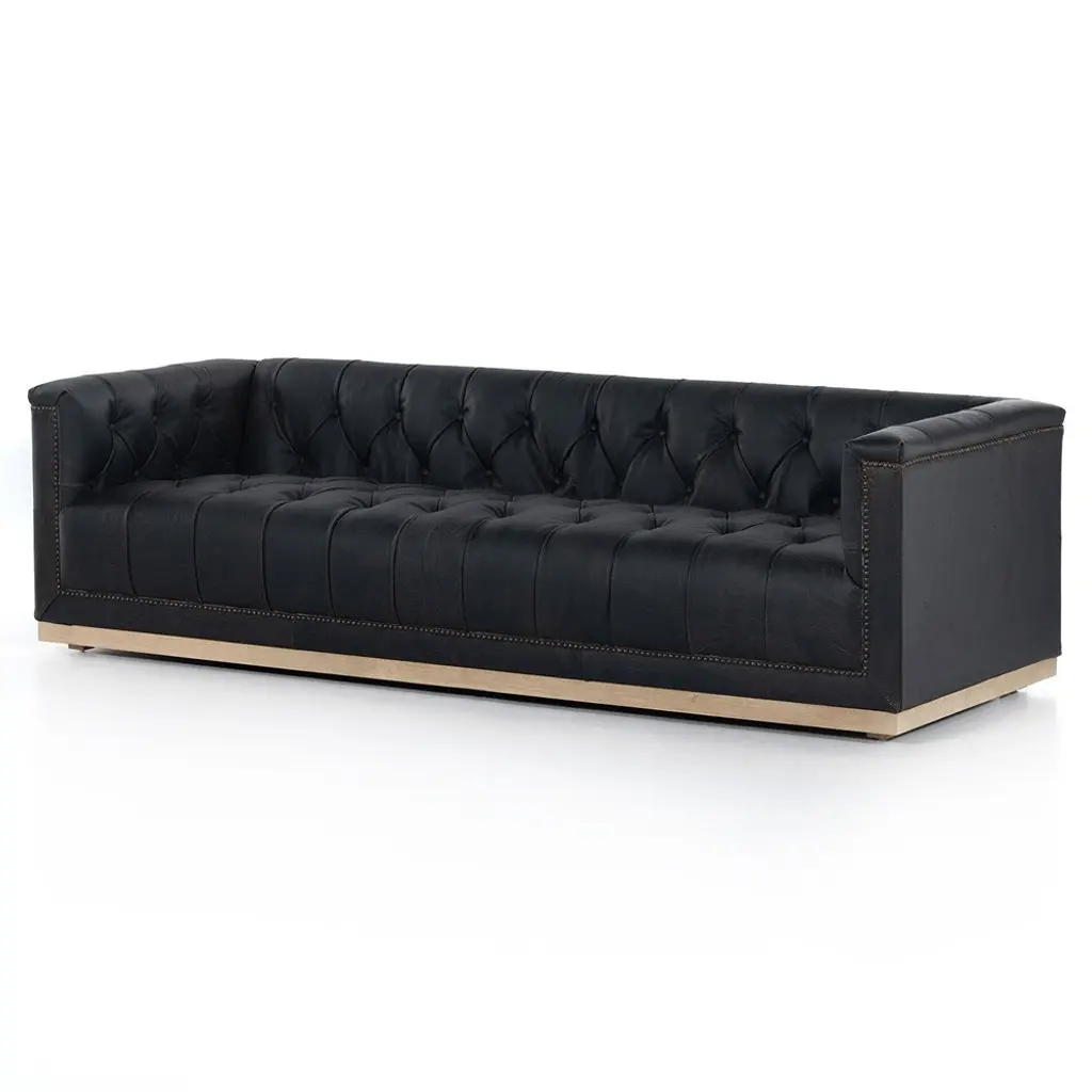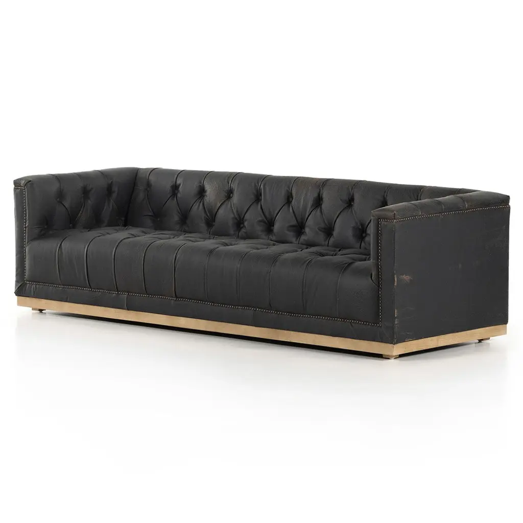 Emmy Rustic Vintage Black Leather Tufted Nailhead Trim Sofa - Large - 95"w
