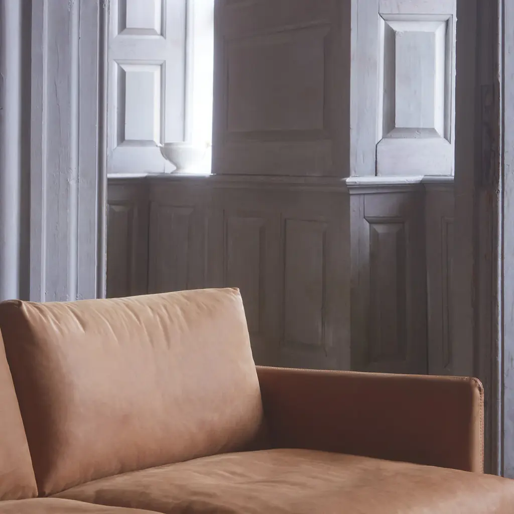 The Emo sofa is an update to the classic 1950s sofa style with a more inviting and less rigid appearance. "I wanted to design a low-slung sofa that is simple, elegant, and comfortable" says designer Mika Tolvanen. It is a balance between thin and thick parts which looks as good from the back as from the front and side.