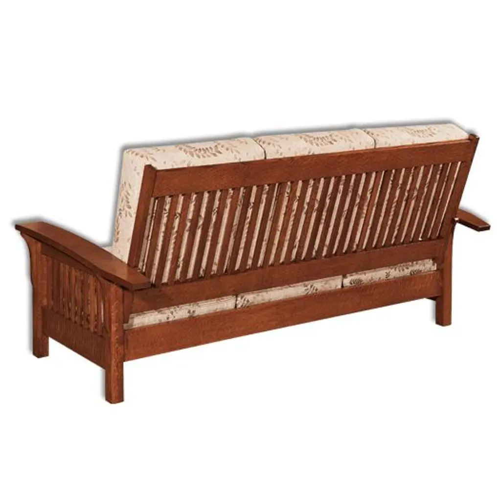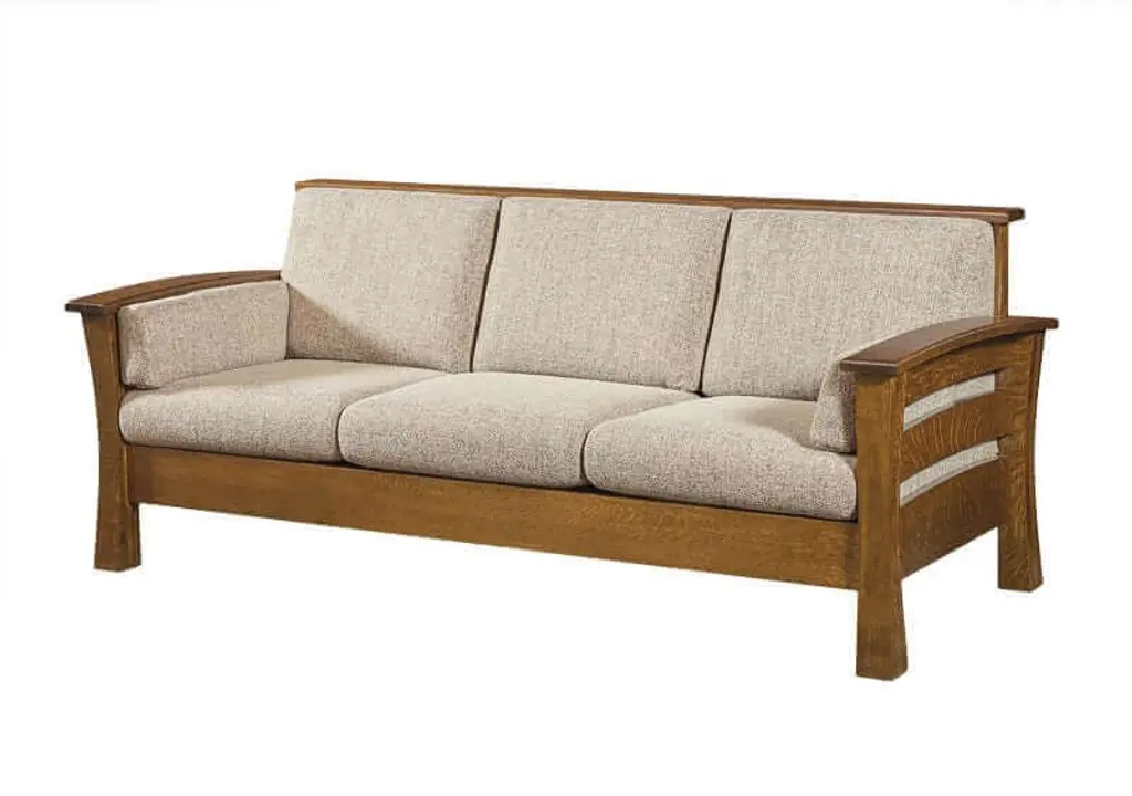 The Amish Empire Sofa is a Mission style Sofa with a bowed armrest, prairie mission slats and Mission corbels. The Empire Sofa is a pure Mission style piece!