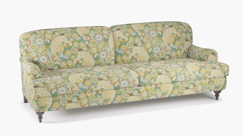 With traditional details and a fresh silhouette, our English Roll Arm sofa exudes character and charm. Featuring a delicate rolled arm, ruched details, and a subtly sloped back, it's a classic with a slight modern twist. Our sofa frames are constructed from solid wood, laminated panels, and tempered steel springs engineered to stand the test of time. With a reversible, down alternative cushion, the English Roll Arm Sofa offers a soft and supportive sit with minimal cushion fluffing required. White Glove delivery. No assembly required.