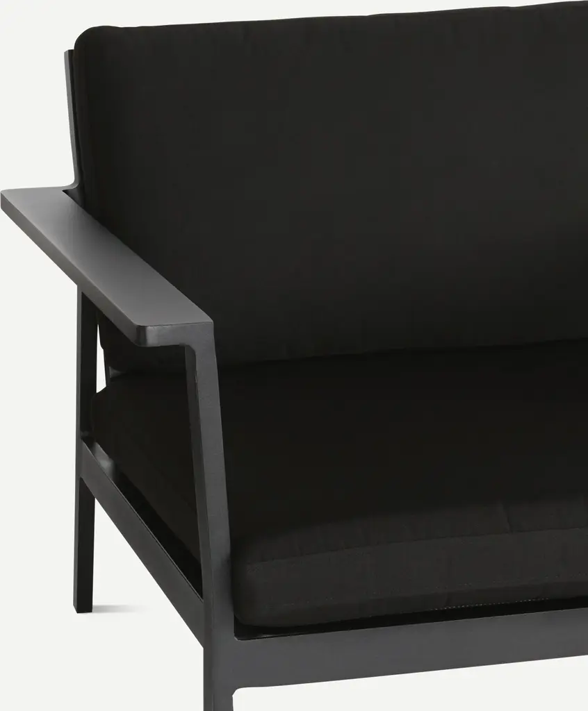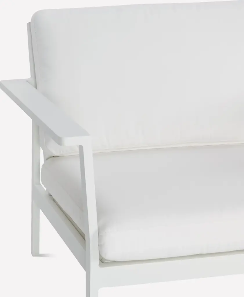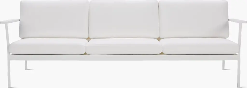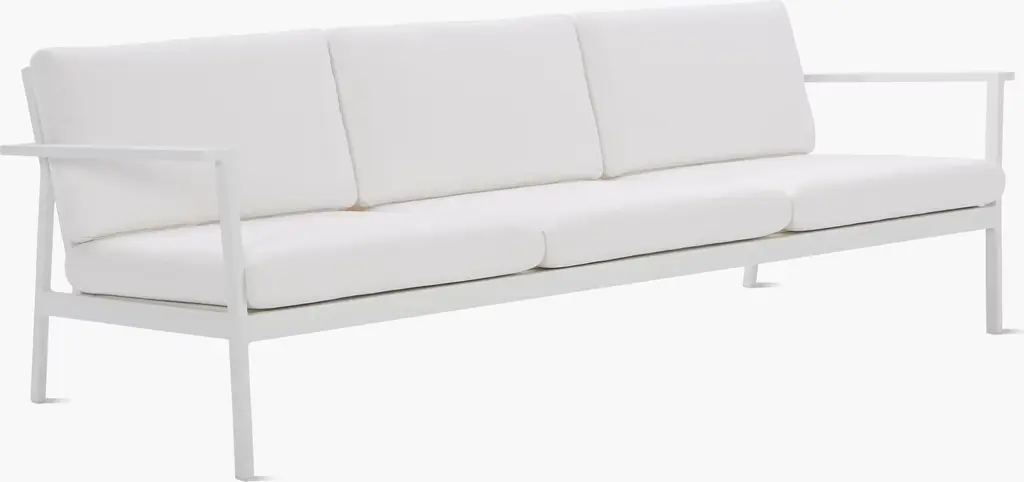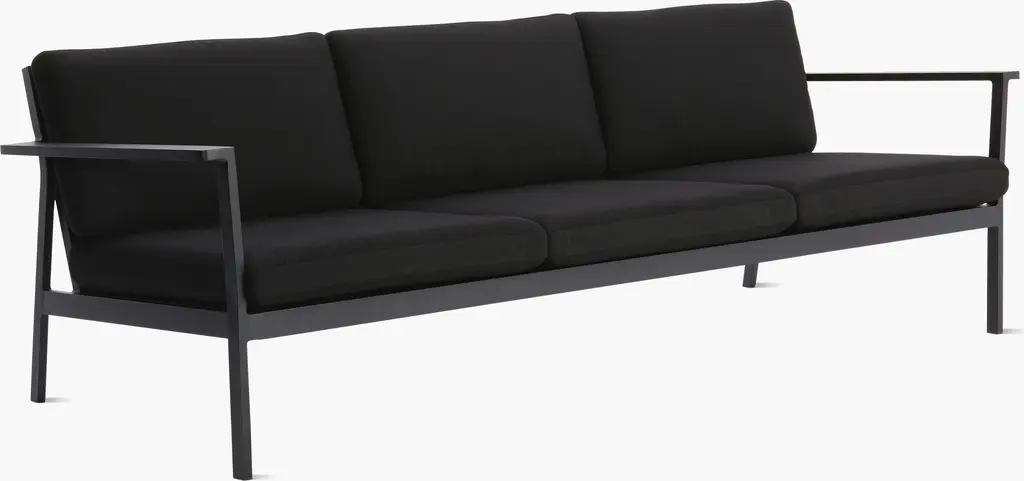 Seeing a need for durable modern outdoor furniture, Matthew Hilton created the Eos Collection (2011), which is sleek enough to work in indoor spaces as well. Named for the Greek goddess of dawn, and designed to be enjoyed morning, noon, and night, Eos is smartly proportioned, and very comfortable. Topped with quick-drying cushions covered in weatherproof Sunbrella fabric, the strong and very weather-resistant Eos Sofa has a seat depth that's perfect for a variety of lounging positions. Made in China.