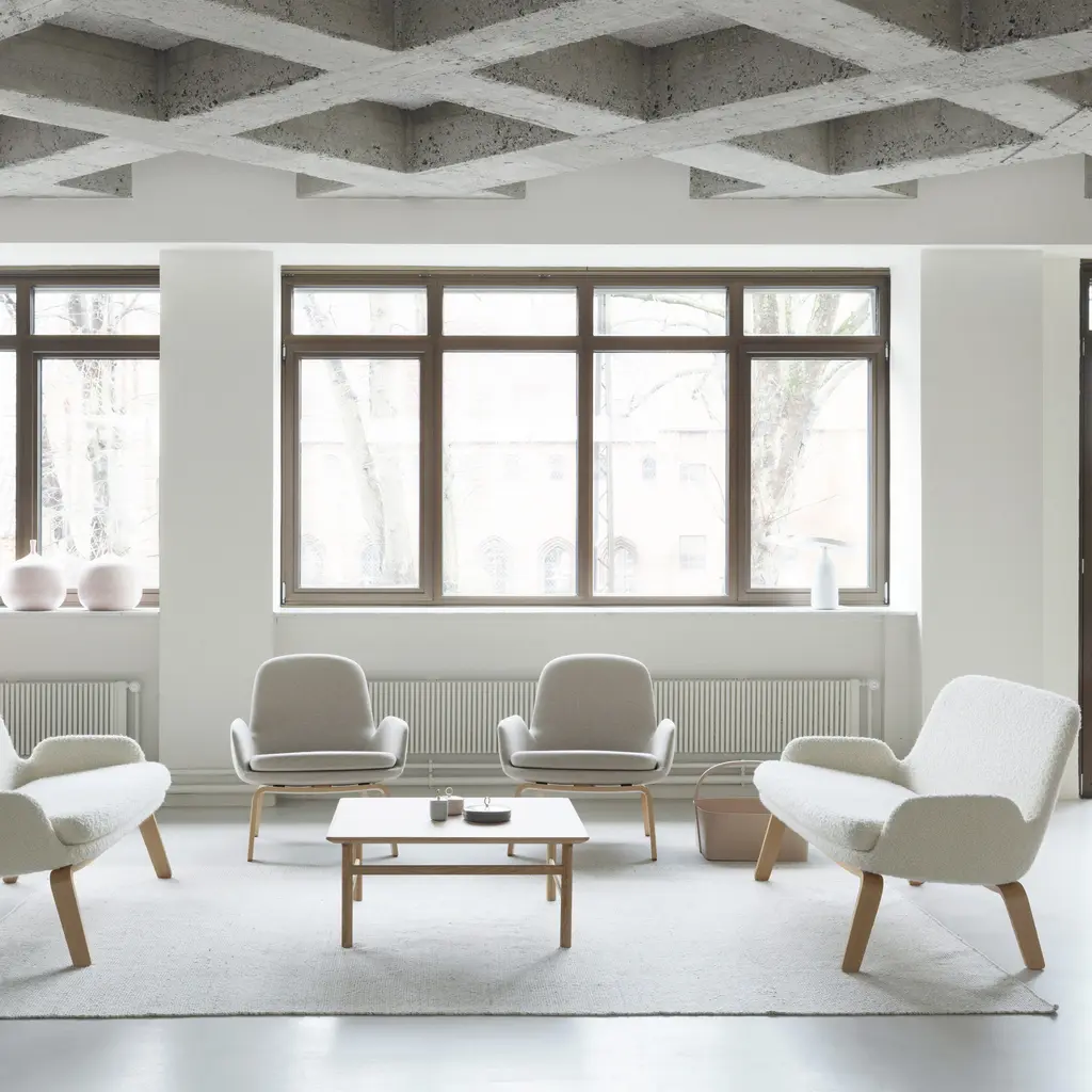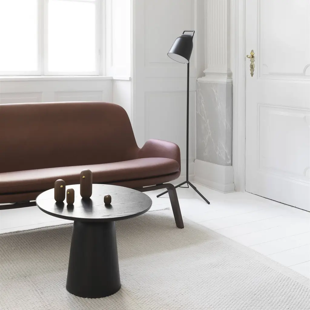 The soft curves and sleek lines of the Era Sofa clearly reveal the DNA of the series from Normann Copenhagen. Designer Simon Legald's preference for defined structure and tight-fitting upholstery recalls early modernist style, especially in this version with wood legs. Yet the Era range also reflects shifting preferences today, combining unreserved relaxation with a subtle demarcation of personal space within a room for quiet reading or online pursuits. The small sofa is once again highly relevant as well as a versatile addition to both residential and workaday environments.