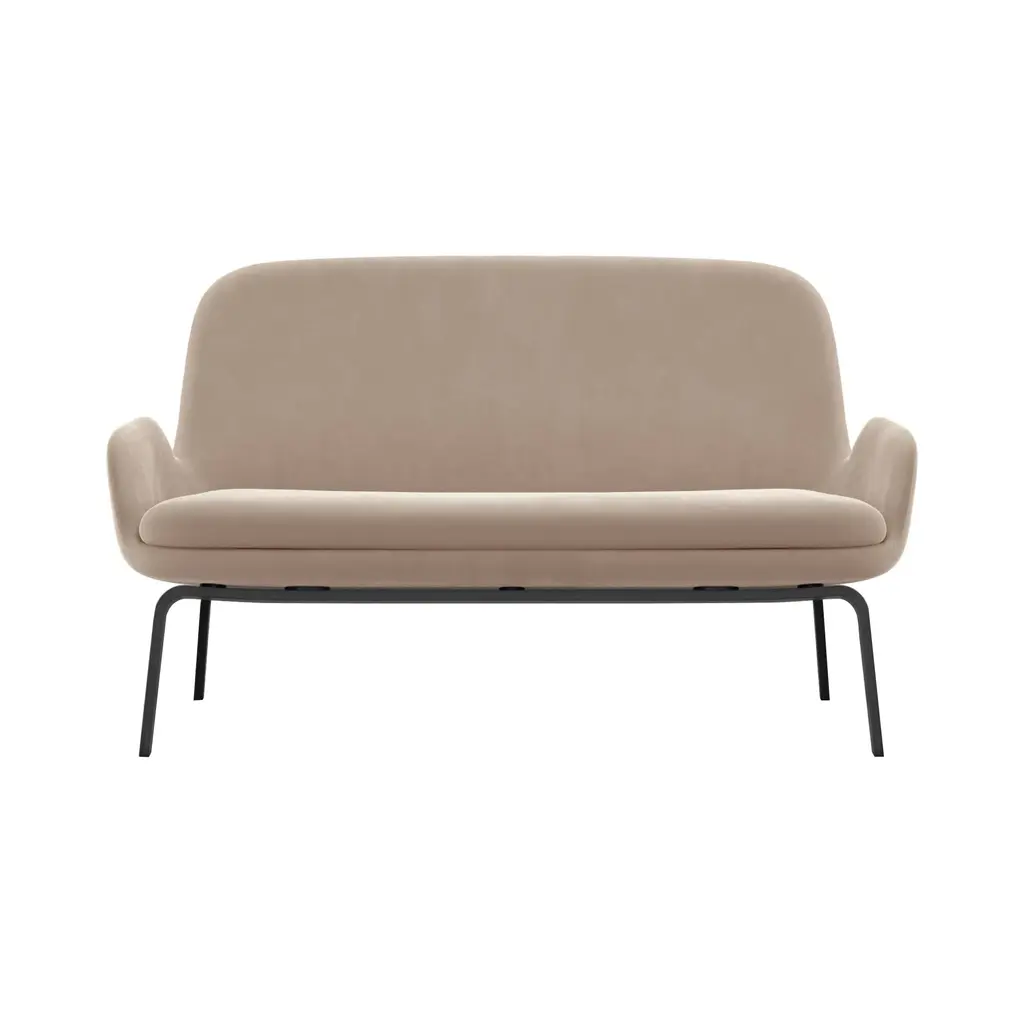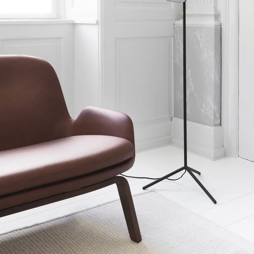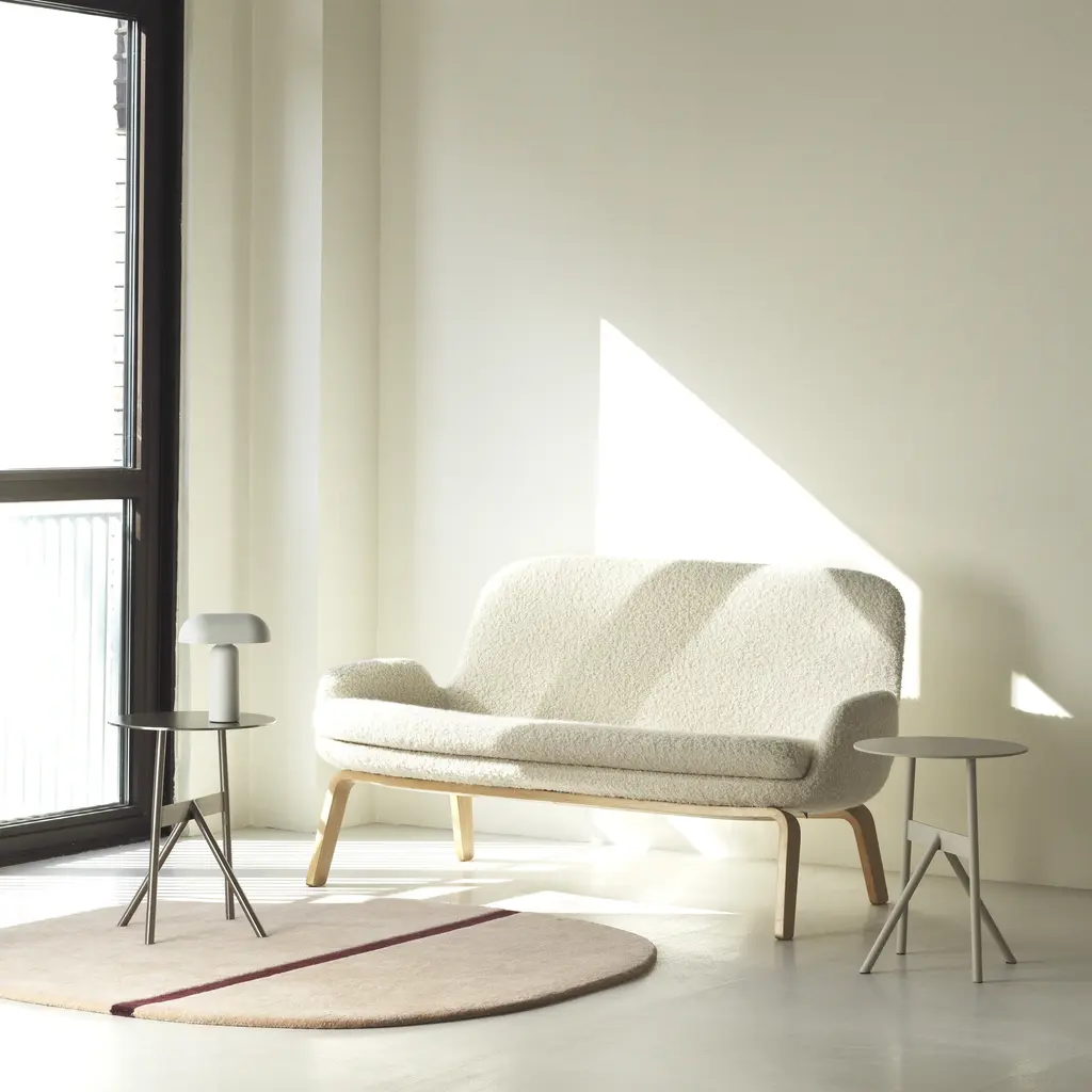 The soft curves and sleek lines of the Era Sofa clearly reveal the DNA of the series from Normann Copenhagen. Designer Simon Legald's preference for defined structure and tight-fitting upholstery recalls early modernist style, especially in this version with wood legs. Yet the Era range also reflects shifting preferences today, combining unreserved relaxation with a subtle demarcation of personal space within a room for quiet reading or online pursuits. The small sofa is once again highly relevant as well as a versatile addition to both residential and workaday environments.
