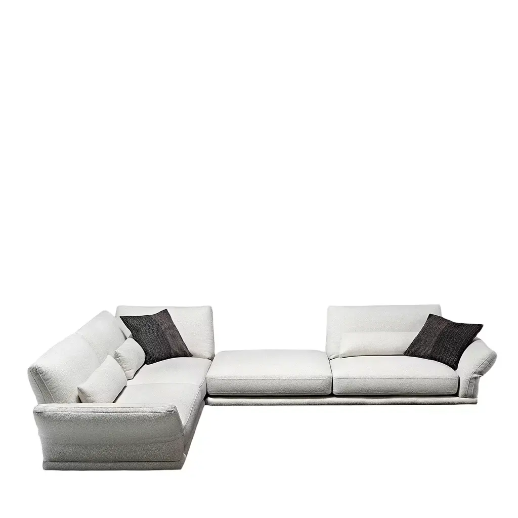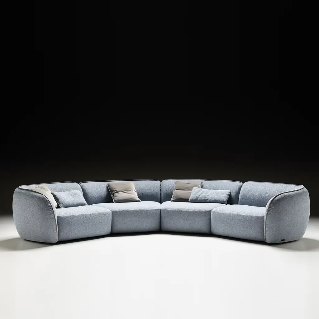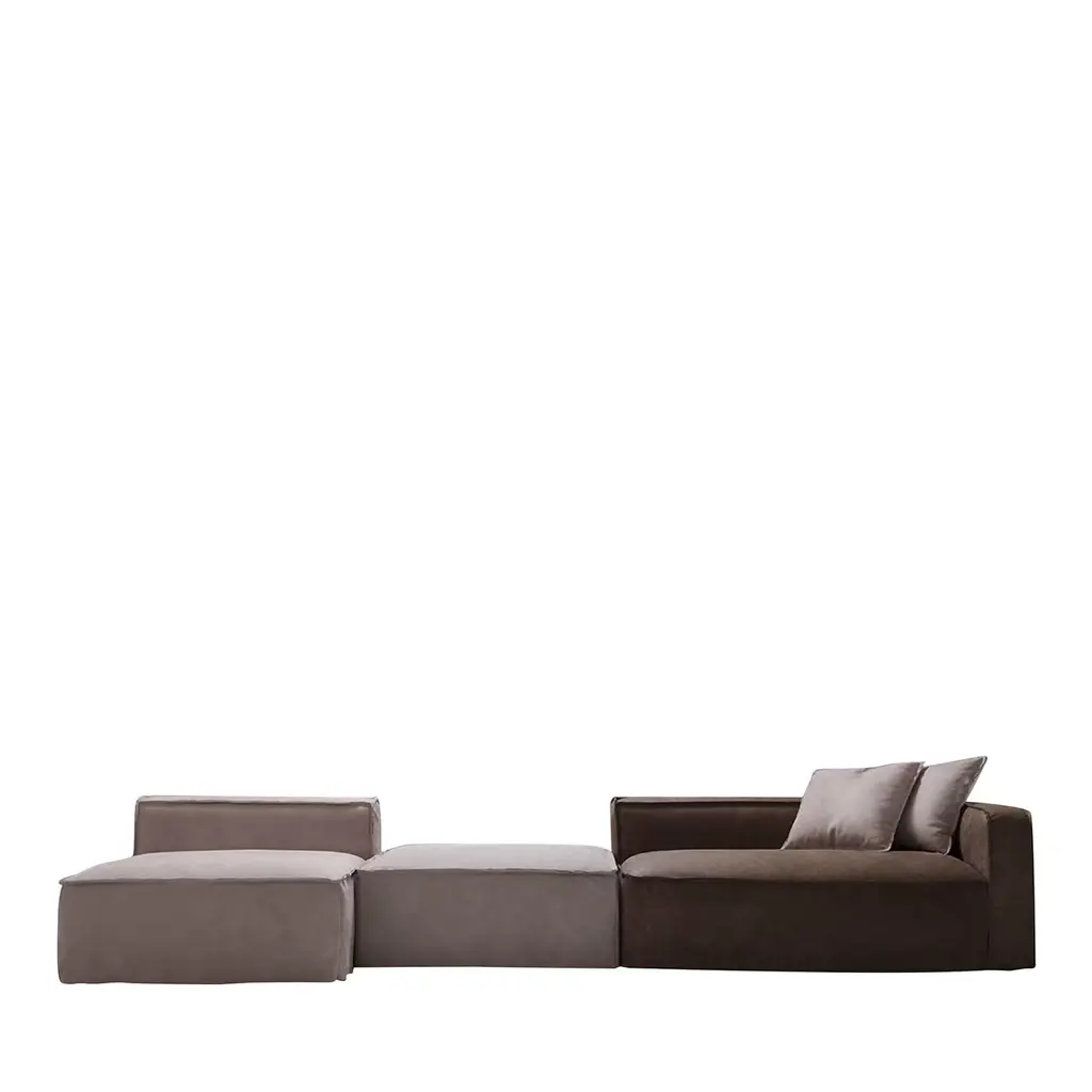 A modular sofa with enveloping and sinuous shapes: Erasmo is a perfect synthesis of classic and modern lines, elegantly highlighted by the creasing of the armrest that discreetly follows the composition. The softness of the fabrics welcomes the seat, made, even more, inviting by the deliciously curved shape, which embraces the most private conversations. The skillful modularity of Erasmo allows for infinite combinations in order to express at best any ideal of refined comfort.