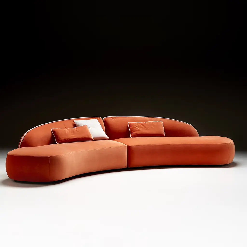 A modular sofa with enveloping and sinuous shapes: Erasmo is a perfect synthesis of classic and modern lines, elegantly highlighted by the creasing of the armrest that discreetly follows the composition. The softness of the fabrics welcomes the seat, made, even more, inviting by the deliciously curved shape, which embraces the most private conversations. The skillful modularity of Erasmo allows for infinite combinations in order to express at best any ideal of refined comfort.