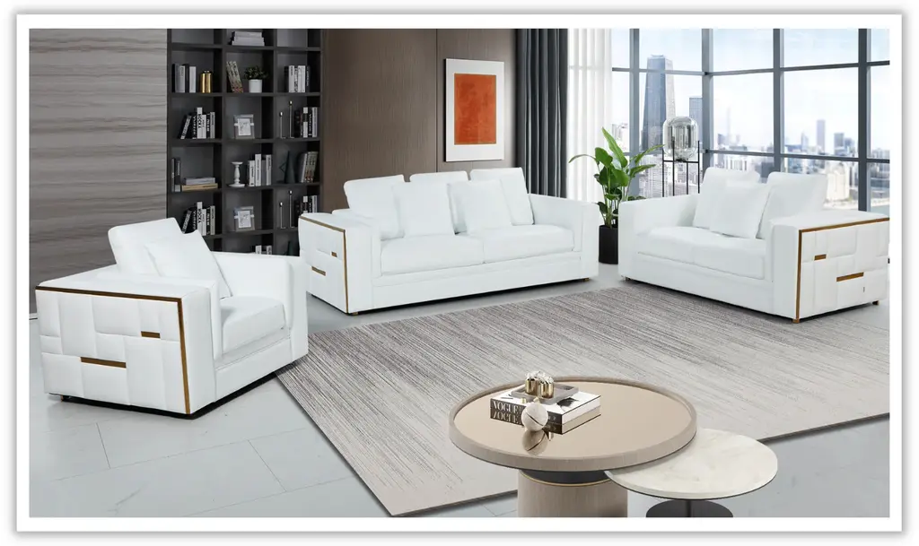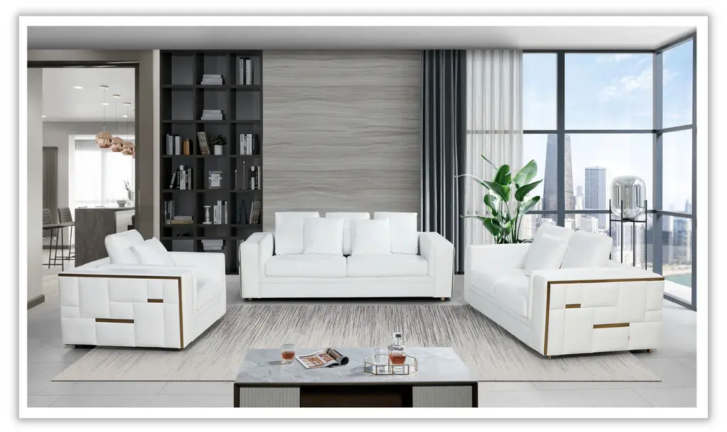 Esf Furniture Adorn 3-Seater White Leather Sofa With Track Arms