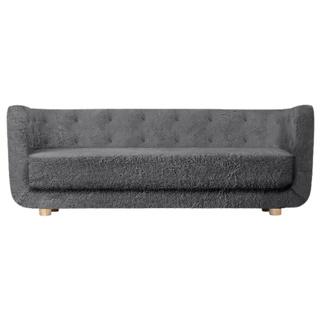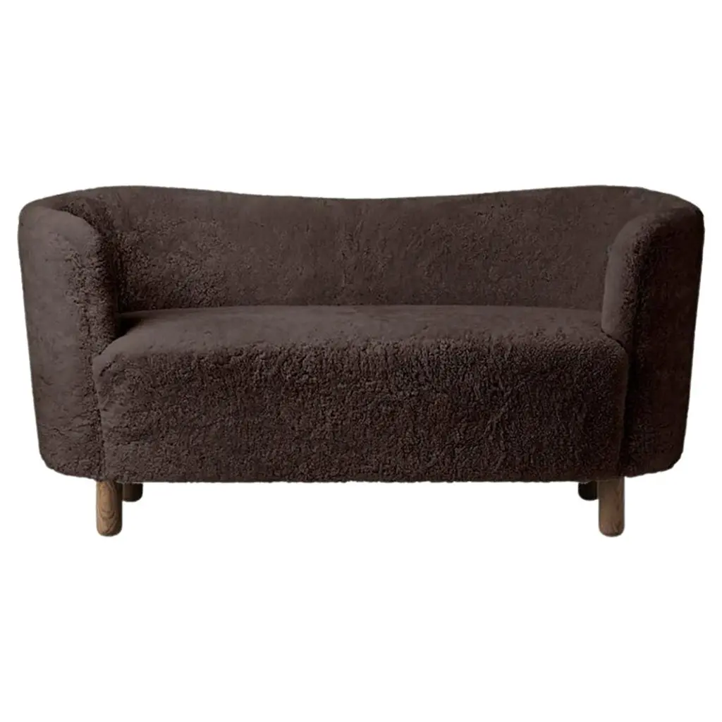 Espresso sheepskin and natural oak Vilhelm sofa by LassenDimensions: W 217 x D 88 x H 80 cm Materials: Sheepskin, oak.Vilhelm is a beautiful padded three-seater sofa designed by Flemming Lassen in 1935. A sofa must be able to function in several ways. It should invite calm and contemplation. Create a private space you can hide in and at the same time invite to life and play. It must be able to withstand sitting on the backrest or on the armrests and then it must be able to stand in the middle of the room if you want to.In addition to being aesthetically beautiful and harmonious, the design makes absolute sense in relation to these parameters.By Lassen is a Danish design brand focused on iconic designs created by Mogens and Flemming Lassen, founded by Lassens’ relatives in 2008. Brothers Mogens (1901-1987) and Flemming (1902-1984) Lassen are known as two of Denmark’s greatest architects and designers. Both were renowned pioneers of Danish functionalism and modernist architecture, honoured with numerous prestigious medals and awards. Headed by Mogens Lassen’s grandson Søren Lassen, By Lassen carries on the brothers’ design philosophy by manufacturing their iconic designs as well as products by other designers that complement the Lassen’s functionalist style. The company’s mission is to continue the tradition of timelessness, functionality and quality, and to introduce the Lassen’s design heritage to new generations.