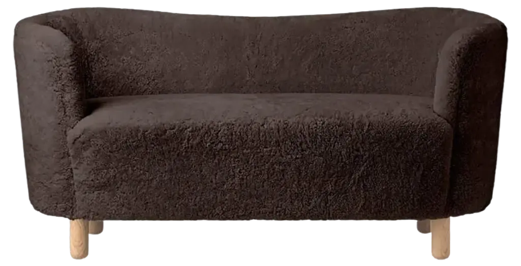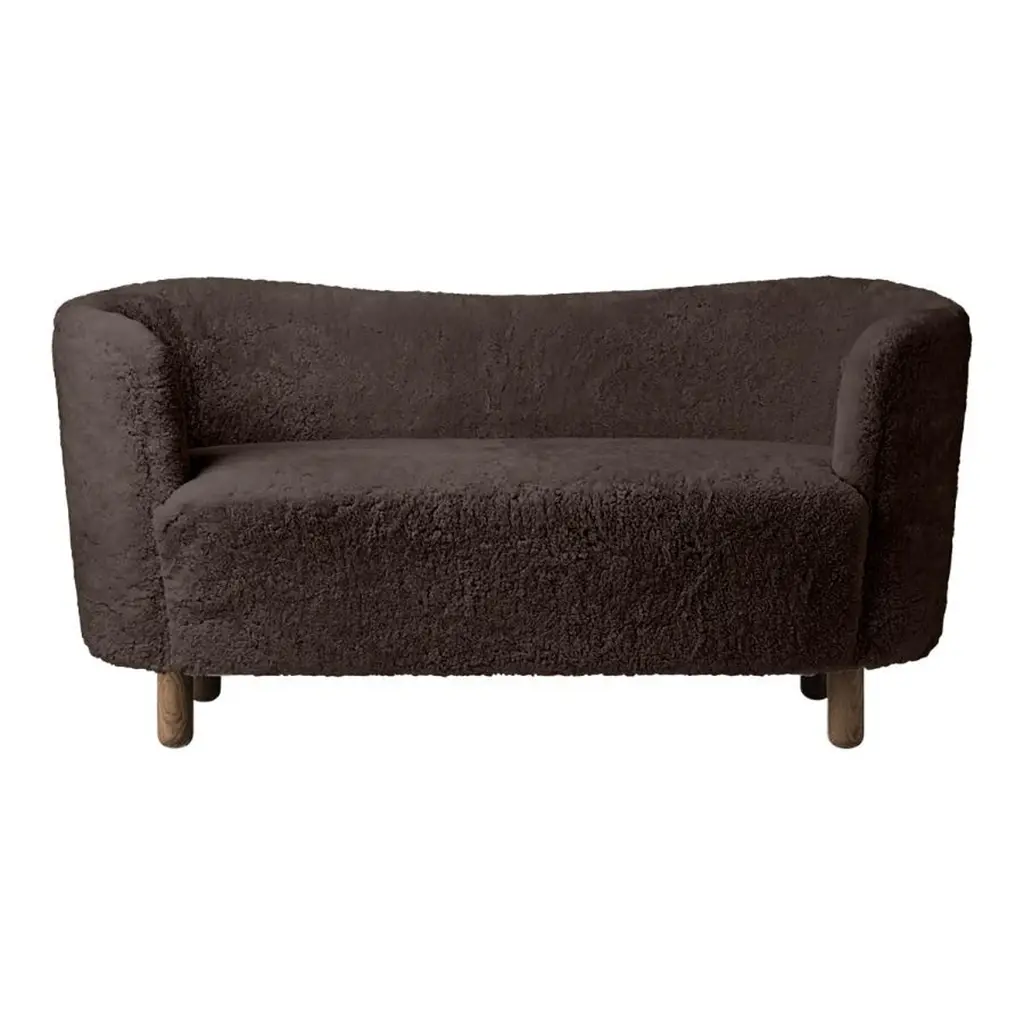 Espresso Sheepskin and smoked oak mingle sofa by LassenDimensions: W 154 x D 68 x H 74 cm Materials: Sheepskin, oak.The Mingle sofa was designed in 1935 by architect Flemming Lassen (1902-1984) and was presented at The Copenhagen Cabinetmakers’ Guild Competition in the same year. It was subsequently praised for its qualities as a small but elegant sofa in the professional journal “The Architect”. Flemming Lassen loved to travel, and he was often inspired by his journeys throughout Europe. He was very taken with both Italy and France, and had a burning desire to tour those countries on his motorcycle. Flemming Lassen wanted to create a sofa made for conversation with a comfort that invited people to stay seated and talk together for long periods of time. The armrests were designed to encircle the sitters, generating intimacy and transforming the sofa into a cosy place to relax. Flemming Lassen took inspiration from both French elegance and modern Italian style, and transferred the trends and his own ideas to a small, upholstered sofa called Mingle.By Lassen is a Danish design brand focused on iconic designs created by Mogens and Flemming Lassen, founded by Lassens’ relatives in 2008. Brothers Mogens (1901-1987) and Flemming (1902-1984) Lassen are known as two of Denmark’s greatest architects and designers. Both were renowned pioneers of Danish functionalism and modernist architecture, honoured with numerous prestigious medals and awards. Headed by Mogens Lassen’s grandson Søren Lassen, By Lassen carries on the brothers’ design philosophy by manufacturing their iconic designs as well as products by other designers that complement the Lassen’s functionalist style. The company’s mission is to continue the tradition of timelessness, functionality and quality, and to introduce the Lassen’s design heritage to new generations.