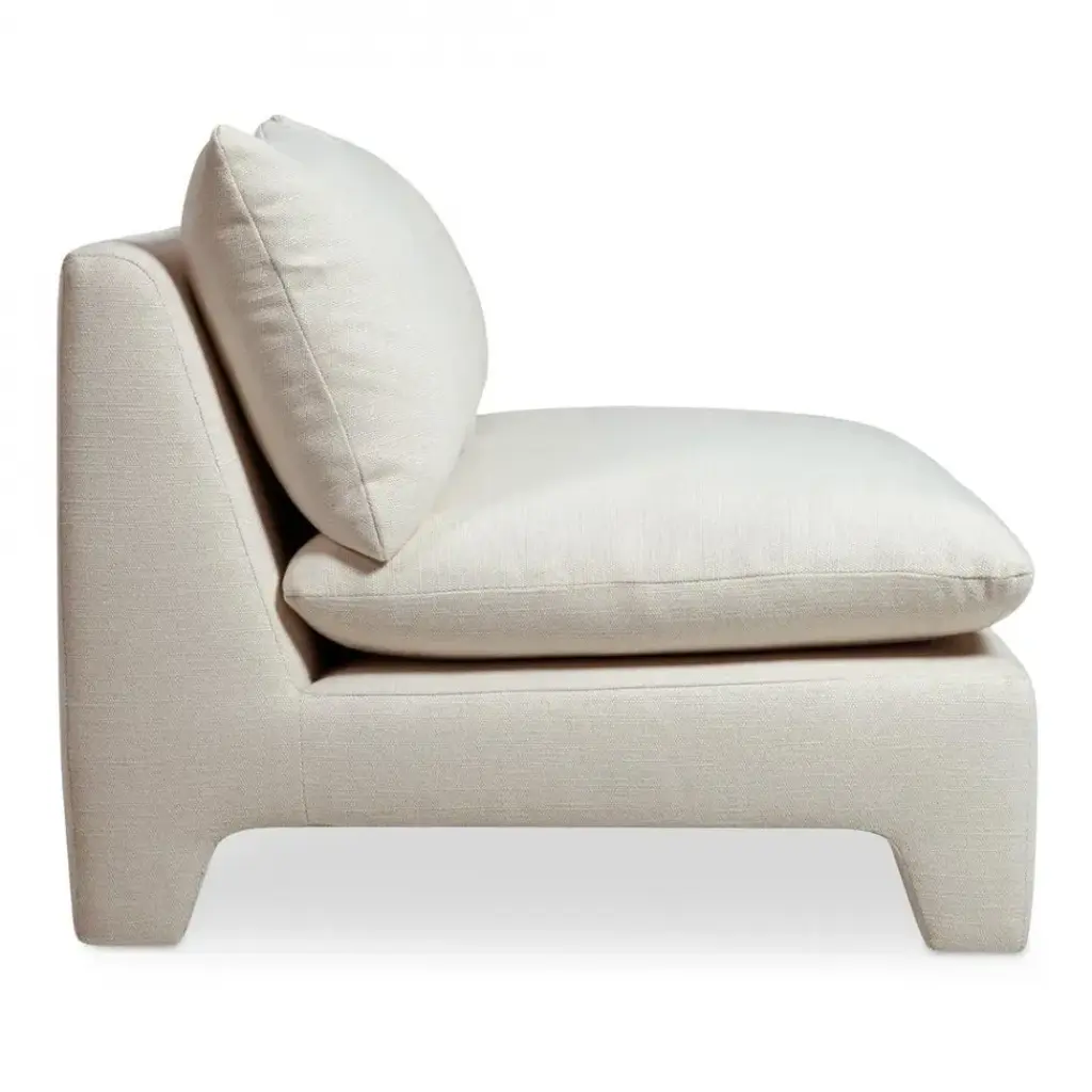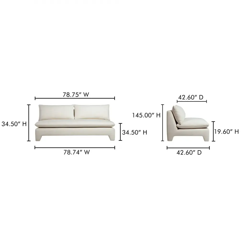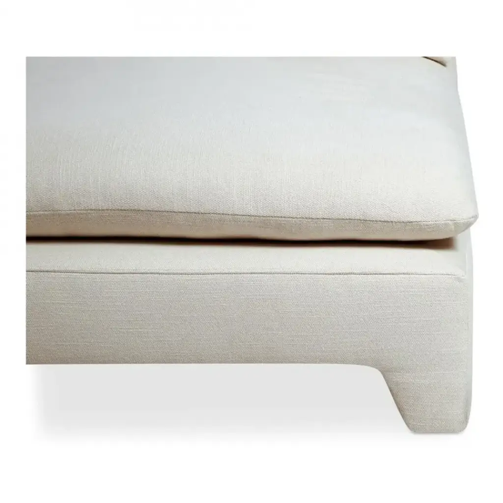 The Estelle sofa seamlessly blends vintage inspiration with a contemporary approach, pairing its armless silhouette with fully upholstered padded legs. A sink-into seat brings the plush comfort of Dacron fiber and feather-fill, while the linen blend fabric adds a relaxed, lived-in look.